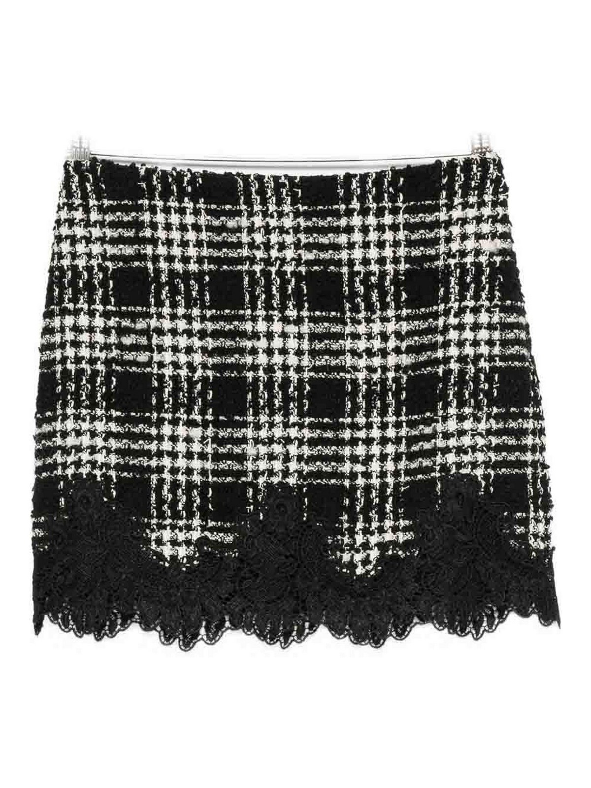 Spitzenbesatz mit schwarz-weißem Karomuster, gewellter Saum, gerader Saum