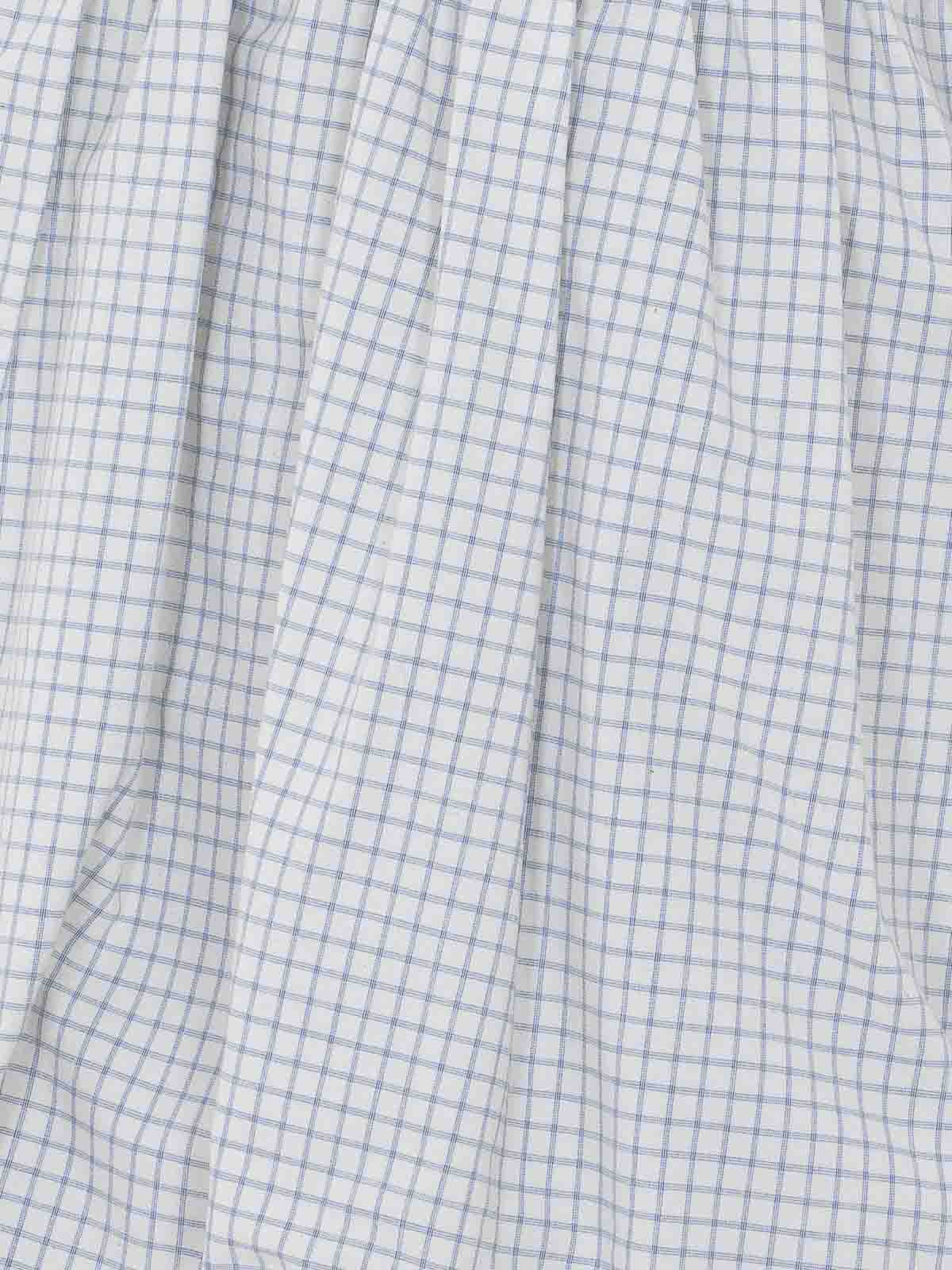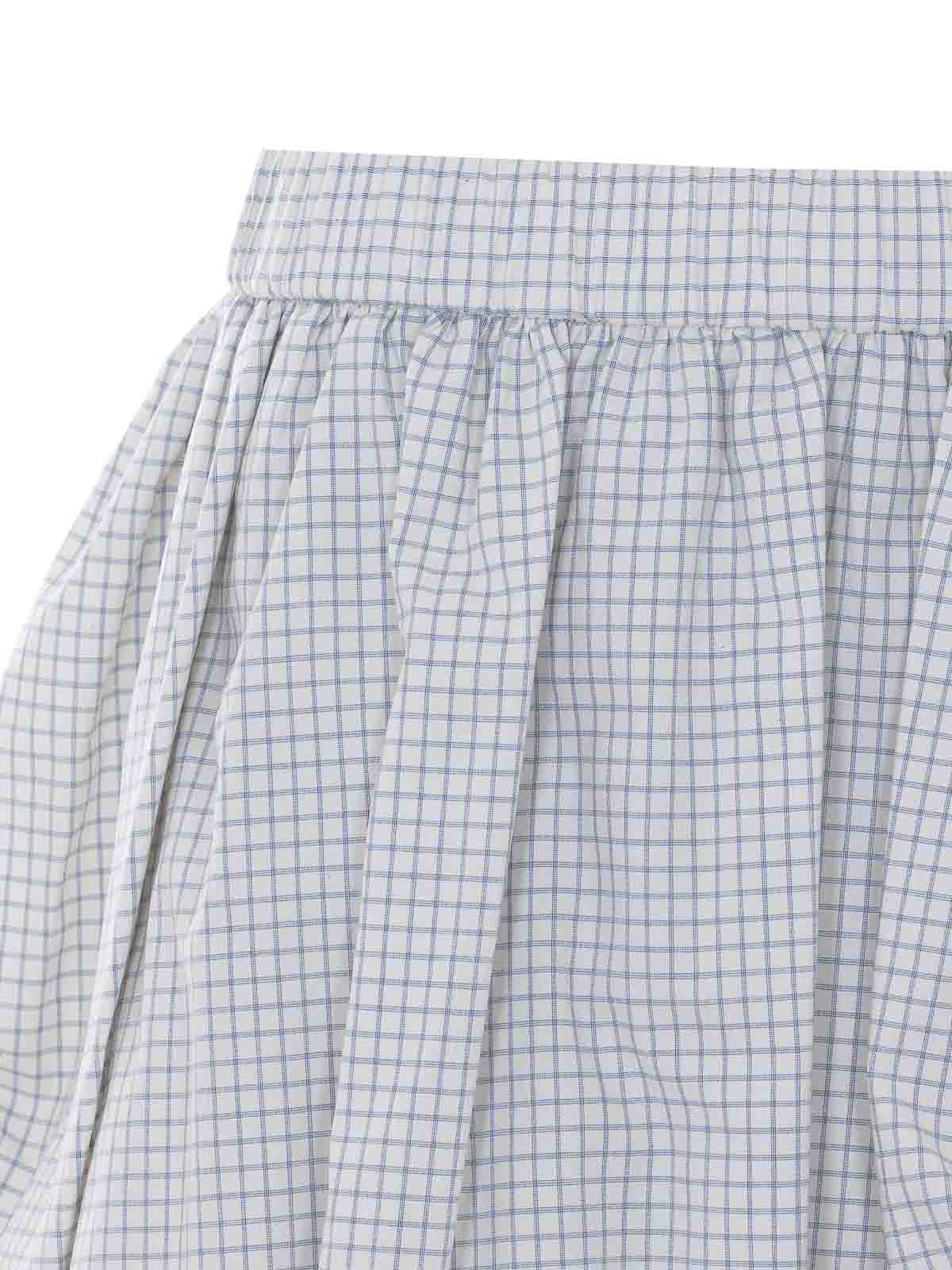 Minirock Eleh in Ecru und Hellblau, elastischer Verschluss, Rüscheneffekt am Saum, kariert