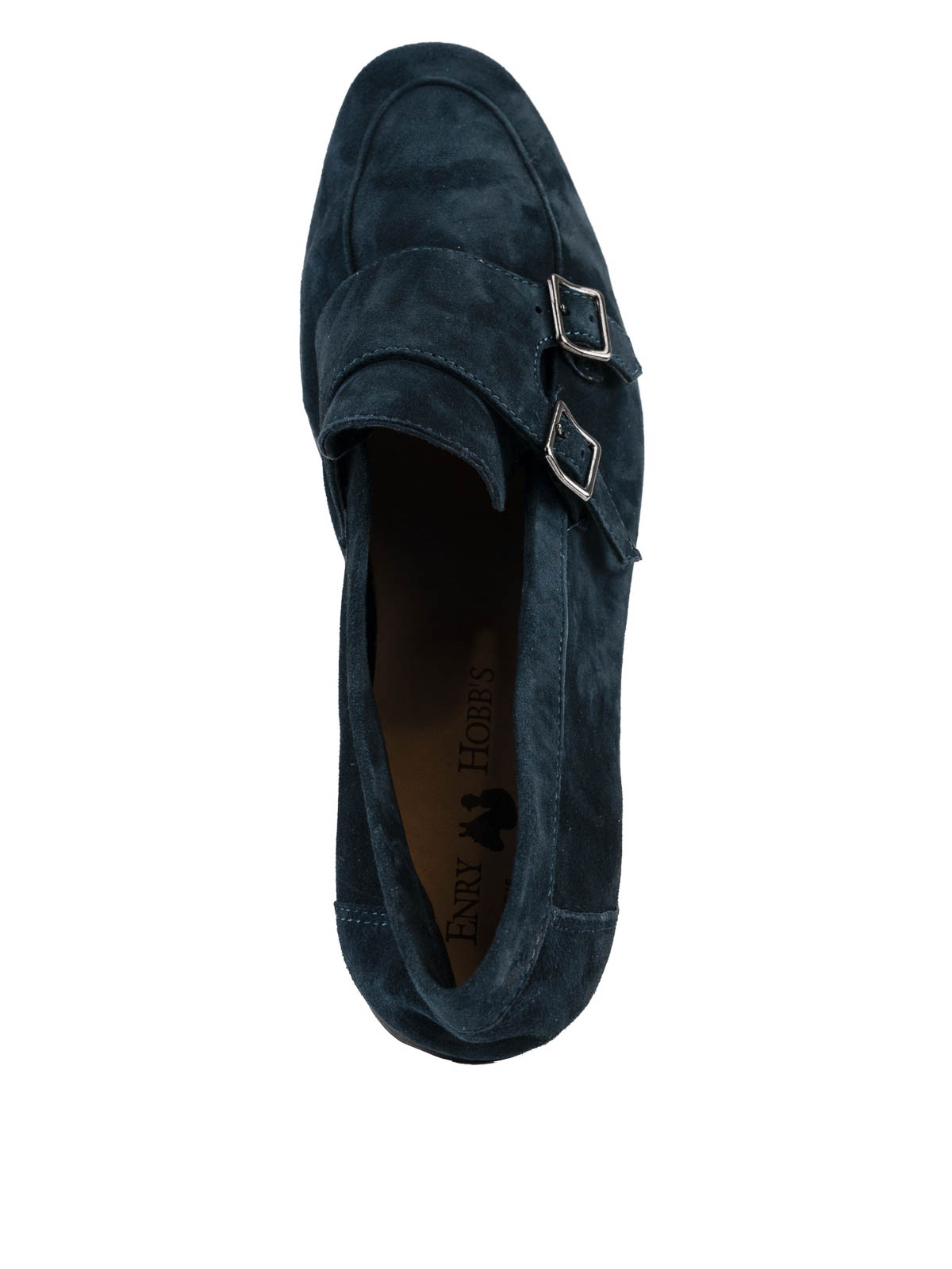 Mandelfarbene Zehenkappe aus Veloursleder mit doppelter Schnalle