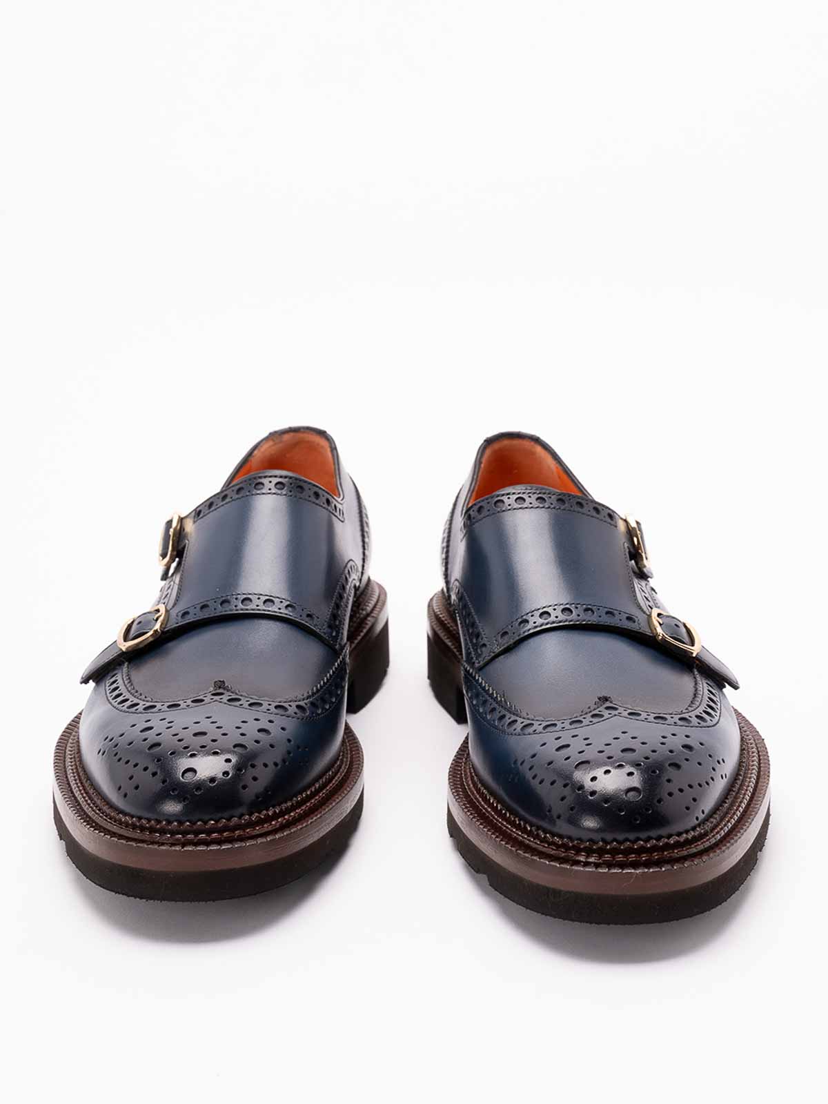 Kalamabuck Schnallenschuhe für Herren aus Veloursleder, die sich durch eine elegante Linie und eine handgefertigte Konstruktion auszeichnen. Die blaue Farbe unterstreicht das raffinierte Design.
