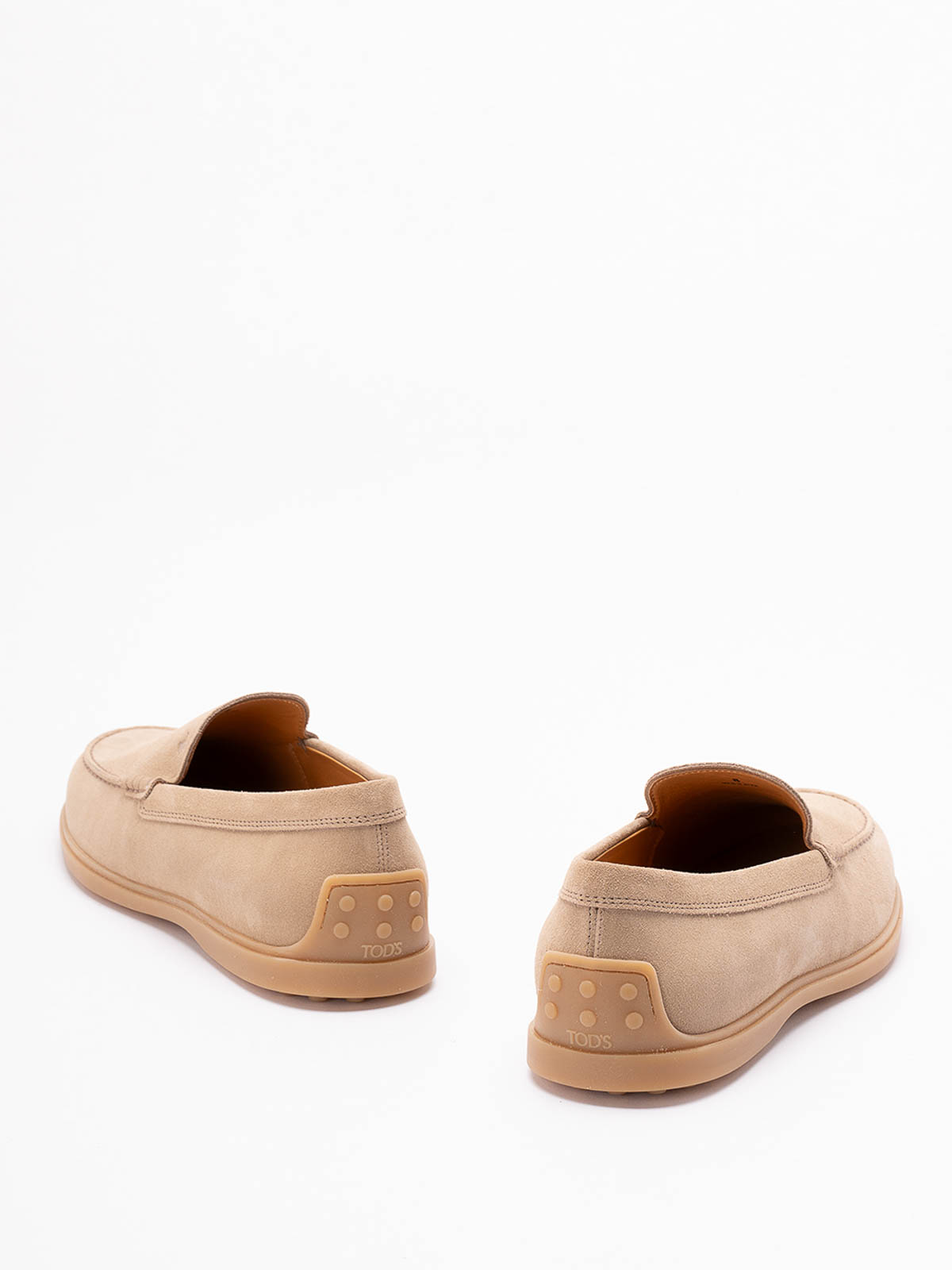 Mit handwerklicher Sorgfalt hergestellte Mokassins aus Veloursleder für Herren. Die warme und natürliche Farbe unterstreicht die klassische Silhouette des Modells, das Komfort und einen eleganten und vielseitigen Stil bietet.