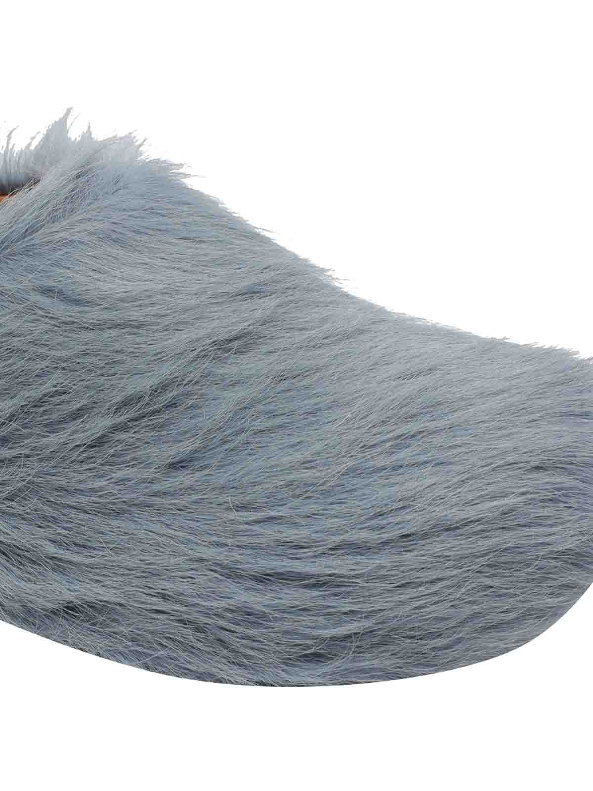 Marni hellblauer Langhaar-Fußsabot, Obermaterial aus langem Haar und Leder, Slip-On, runde Spitze, Gummisohle