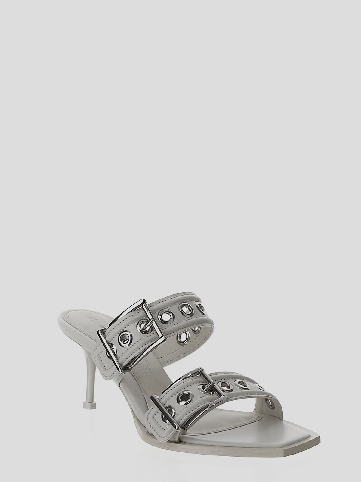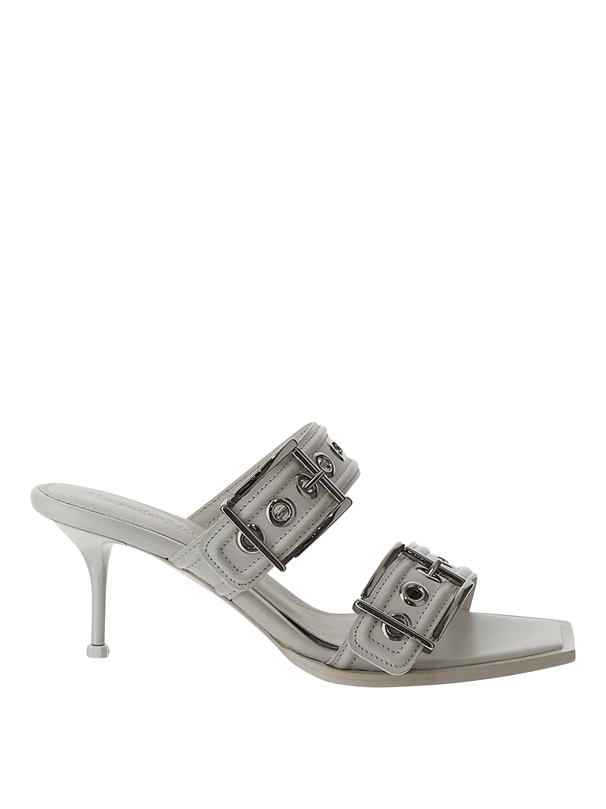 Alexander McQueen Pantolette aus elfenbeinfarbenem Kalbsleder mit doppelten Schnallenriemen