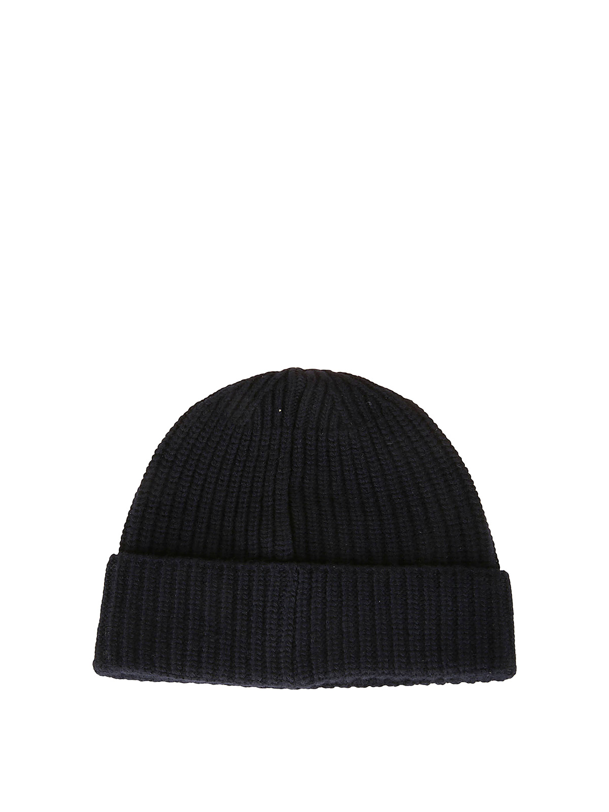 Marineblaue gerippte Geelong-Wollmütze mit Stone Island-Logo auf der Manschette.