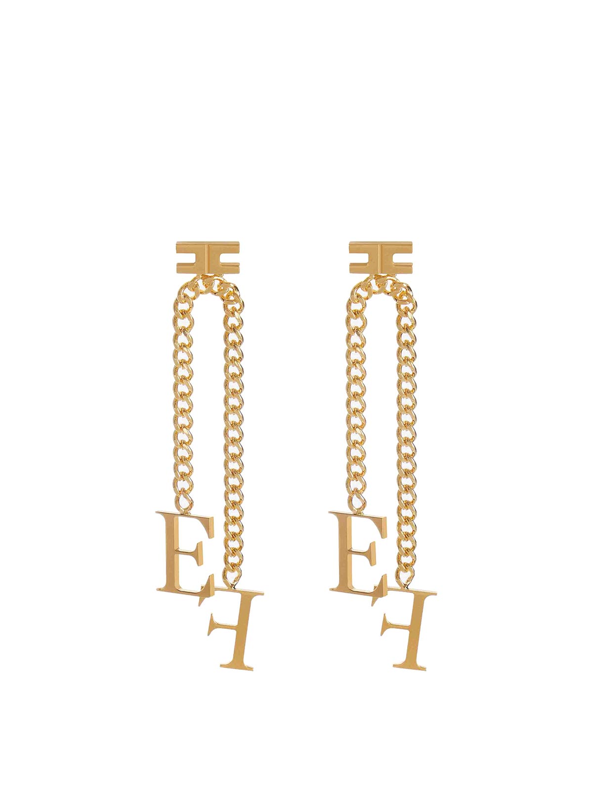 Elisabetta Franchi Hängeohrringe mit Logo, Goldeffekt, Anhängermodell
