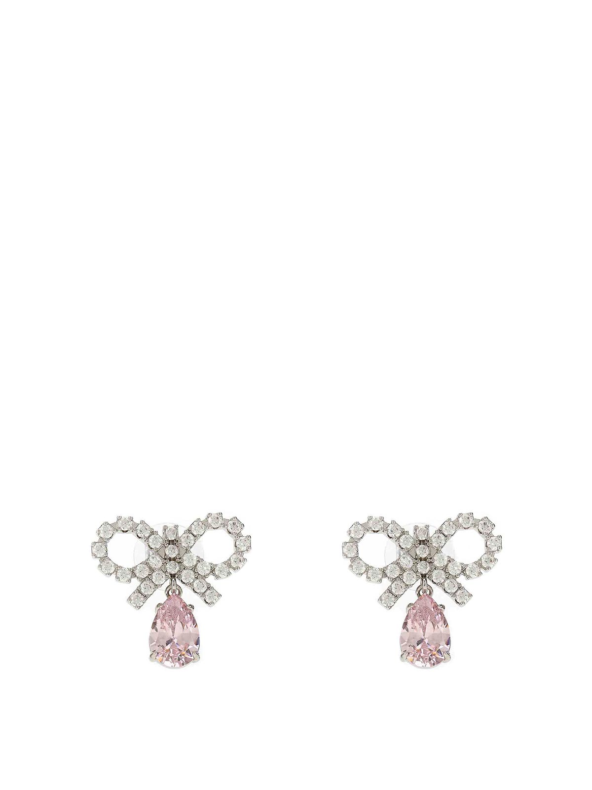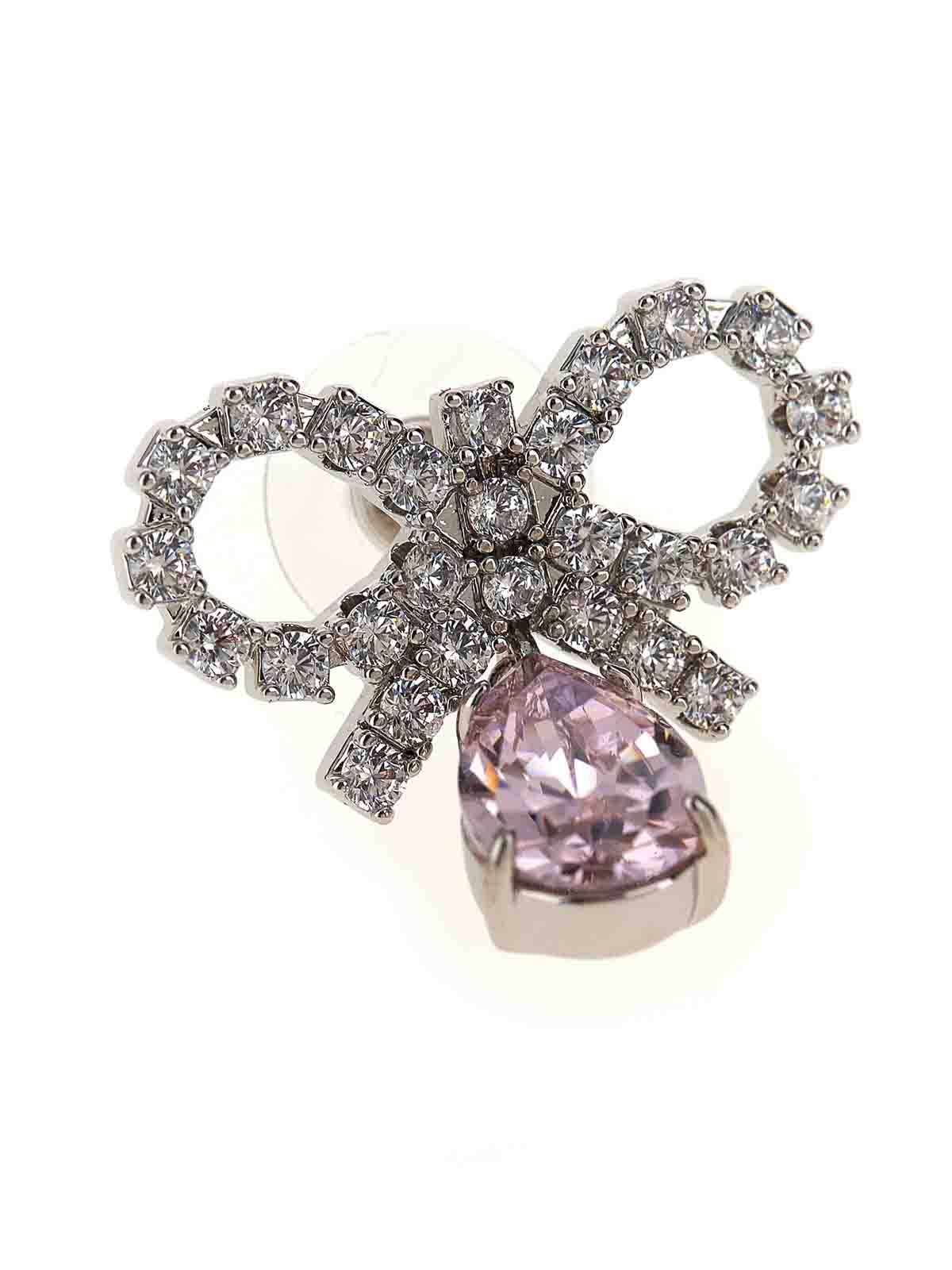 Rosafarbene Ohrringe mit Mikroschleife aus silbernem Messing mit Kristallen und Anhänger, Schmetterlingsverschluss. Der Artikel kann nicht zurückgegeben werden