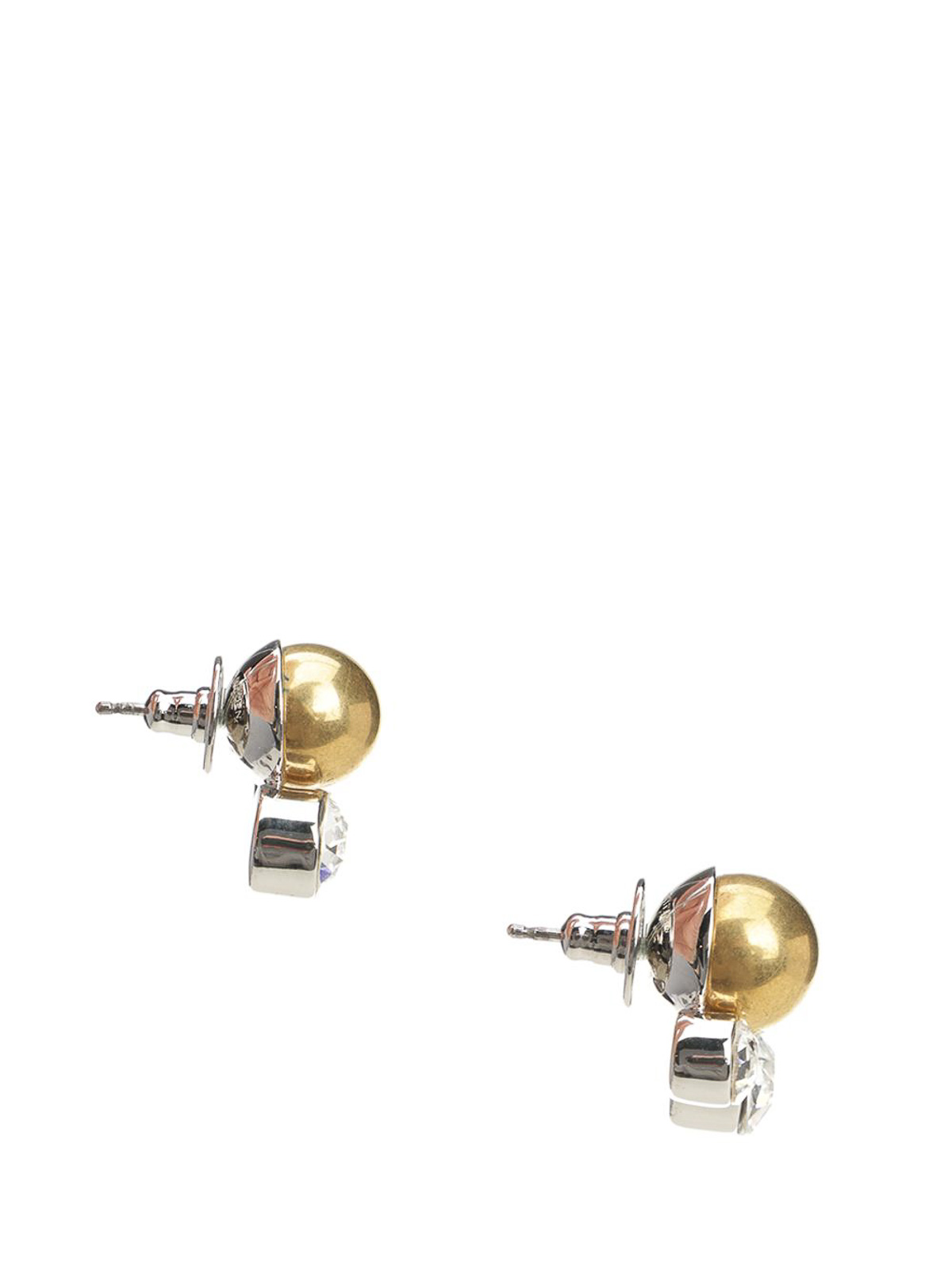 Ohrringe aus Messing mit Messingperlen und Strassverzierungen von Dries Van Noten. Schmetterlingsverschluss.