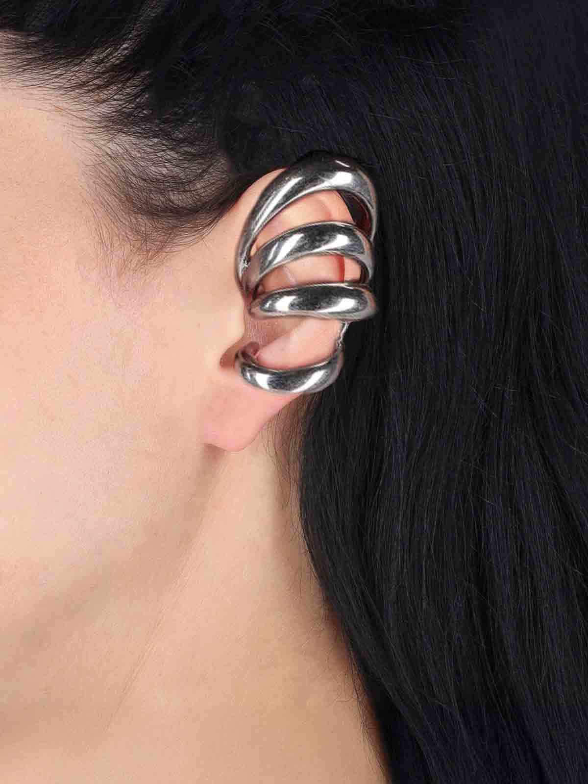 Panconesi Mehrfach aufblasbarer Ohrring aus versilbertem Messing, rundes Banddesign.