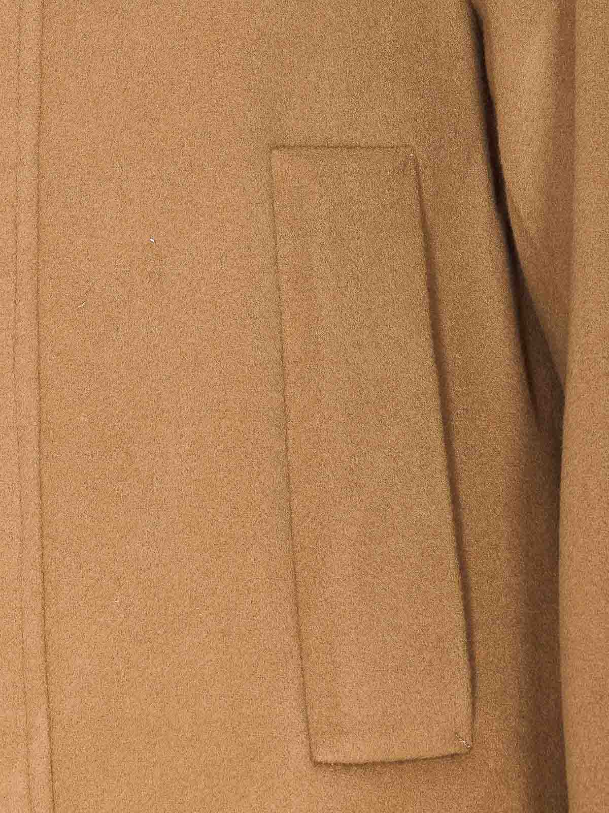 Braune Mackagejacke mit Frontreiß- und Knopfverschluss, langen Ärmeln, Taschen, Kapuze, Lammfelldetail