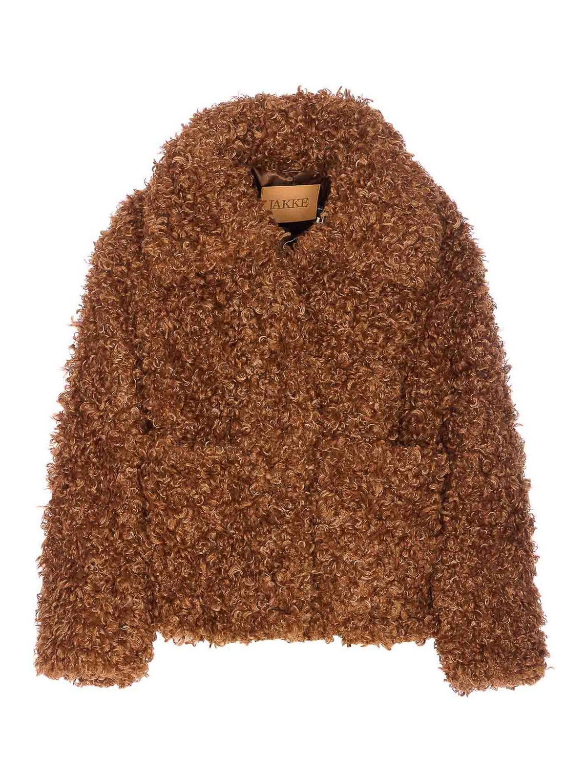 Braune Traci-Kunstjacke von Jakke, lange Ärmel, Fronttaschen