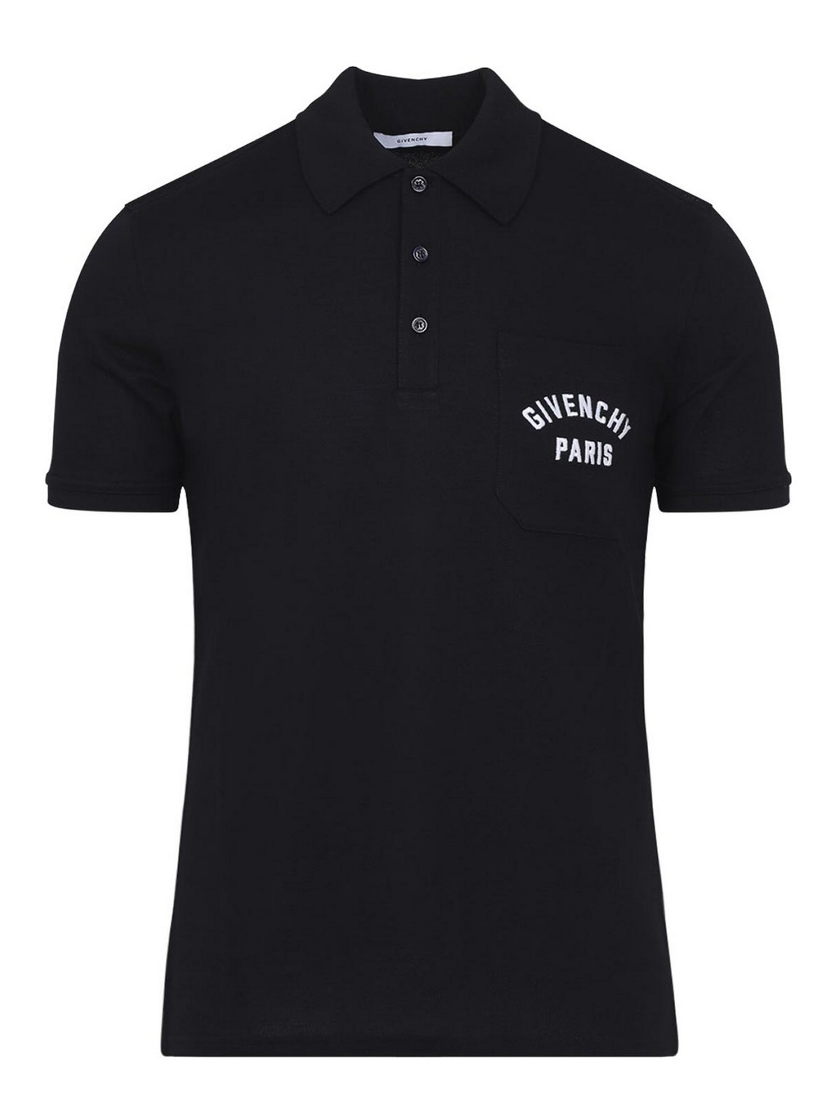 Givenchy Baumwollpolo in Dunkelmarineblau. Poloshirt aus reiner dunkelmarineblauer Baumwolle, klassischer Polokragen, kontrastierendes weißes Logo mit aufgesticktem Schriftzug auf der Brust, kurze Ärmel, gerader Saum, tonale Nähte.