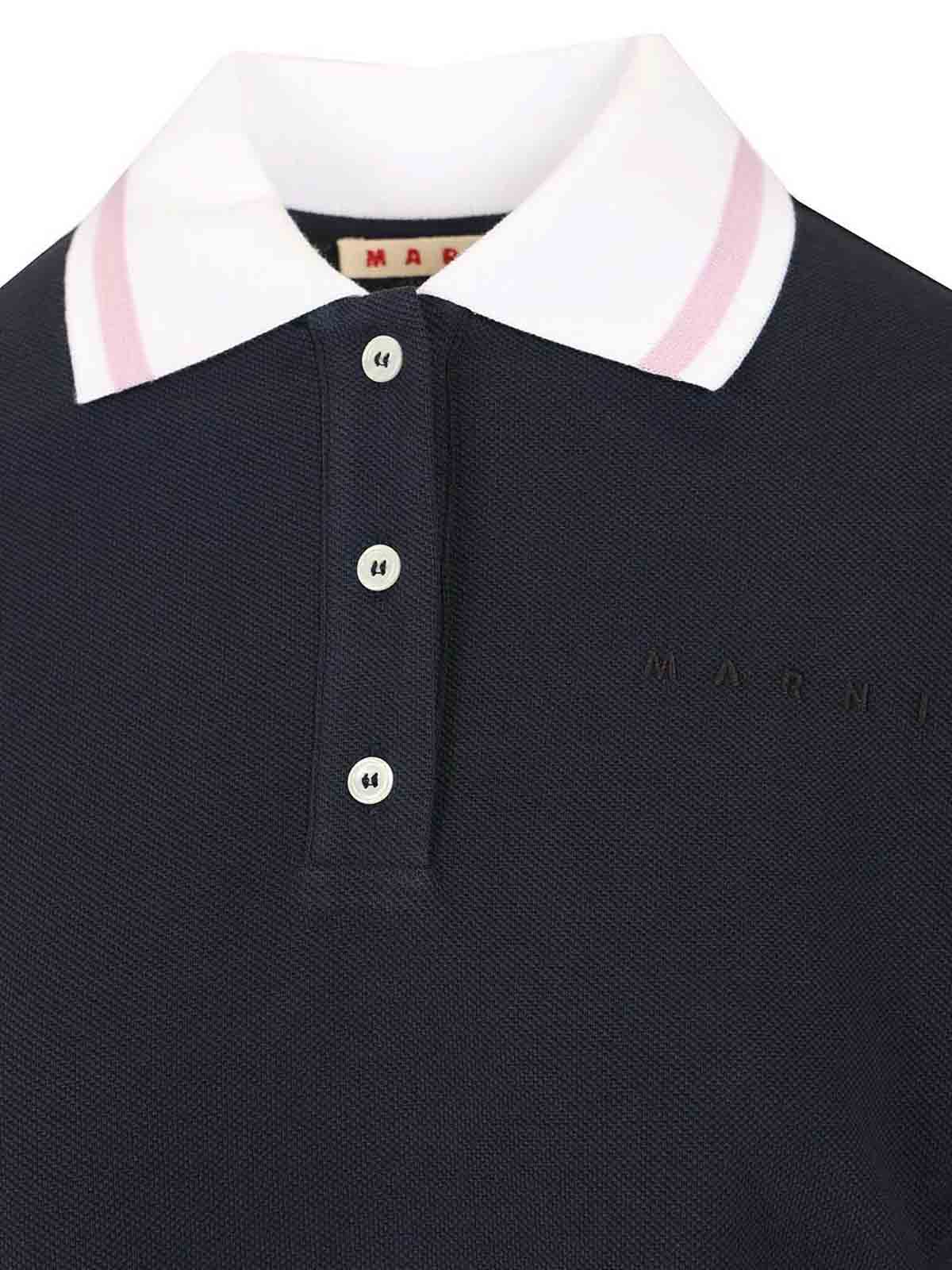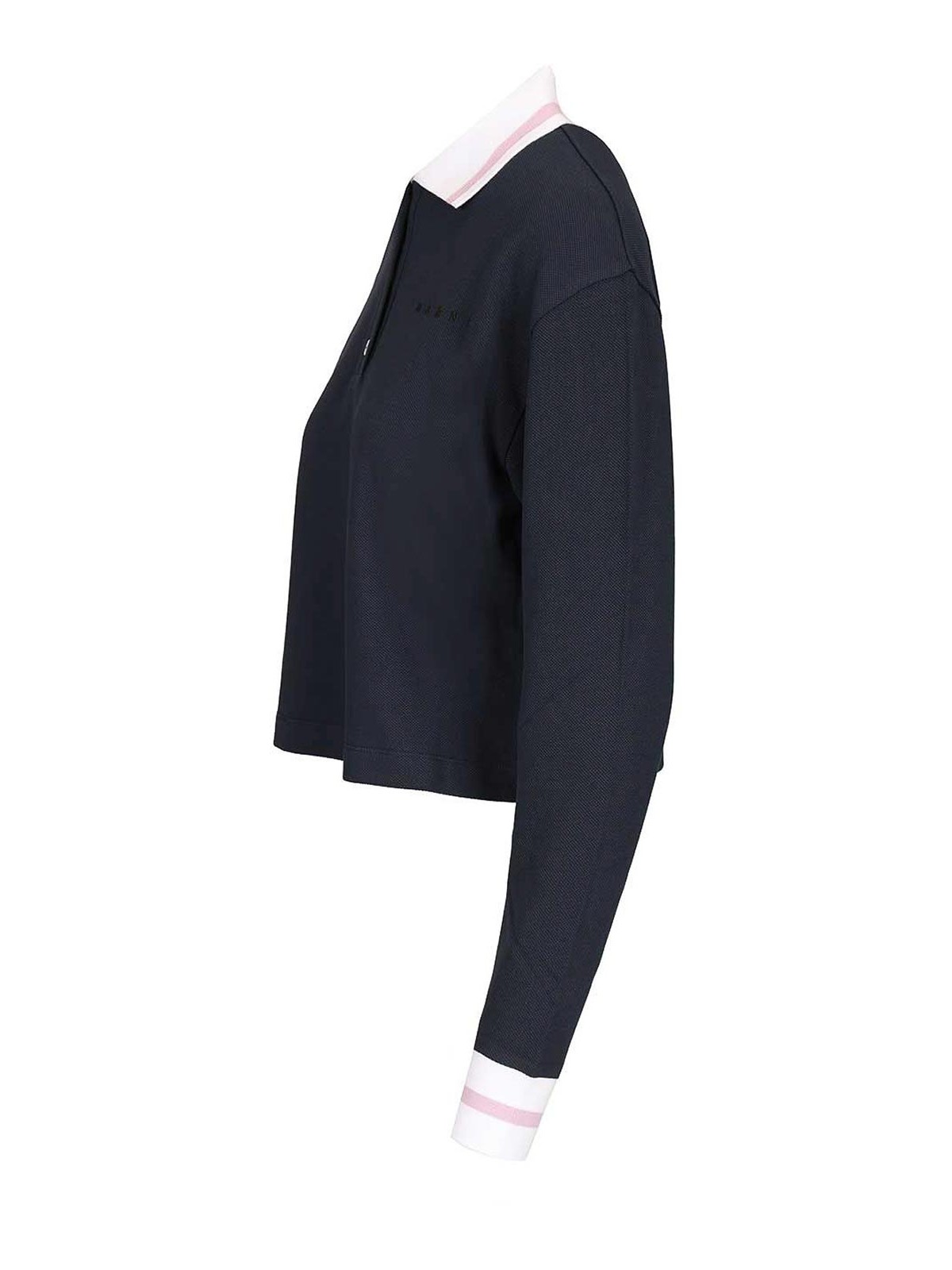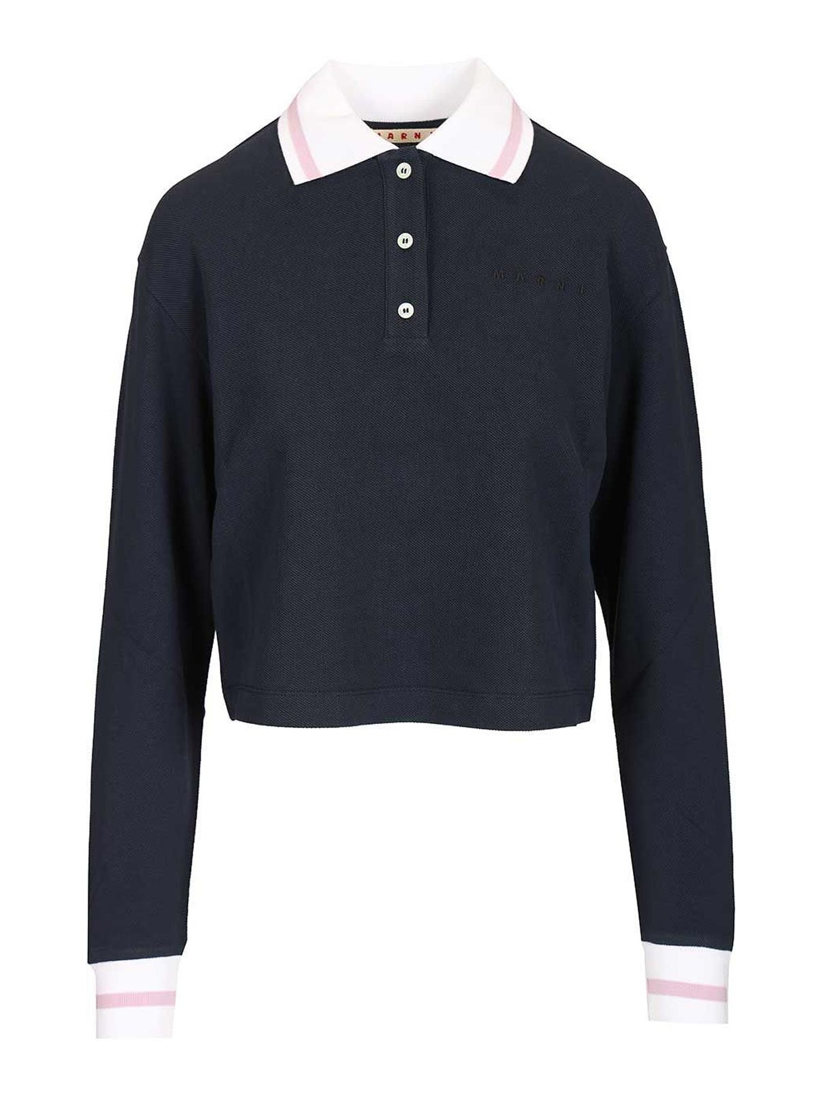 Langärmliges Pique-Poloshirt in Boxy-Passform mit kurzem Saum, kontrastfarbenem Kragen und Ärmelabschlüssen mit gestreiftem Knopfton, einfarbig gesticktem Marni-Logo auf der Brust