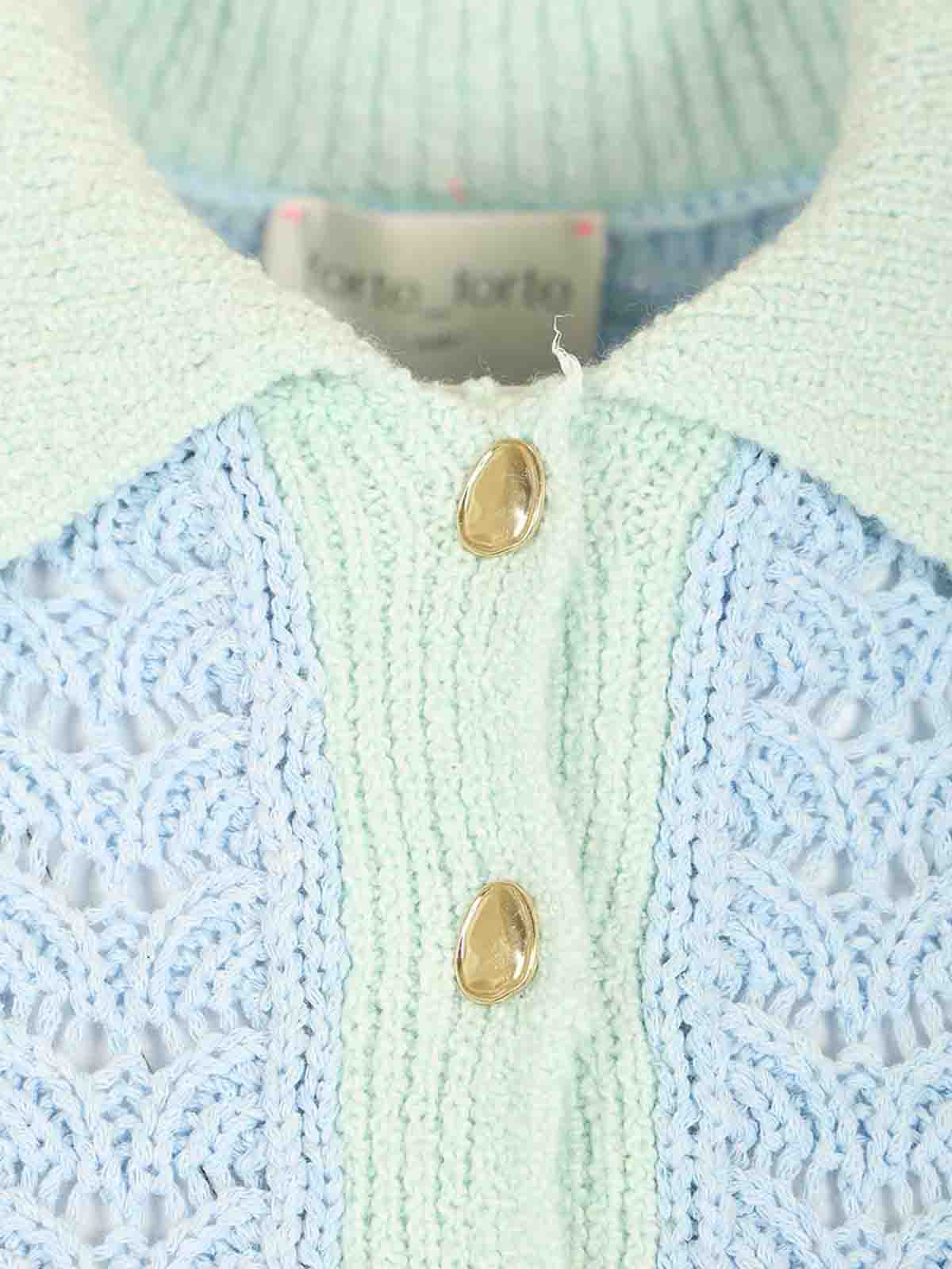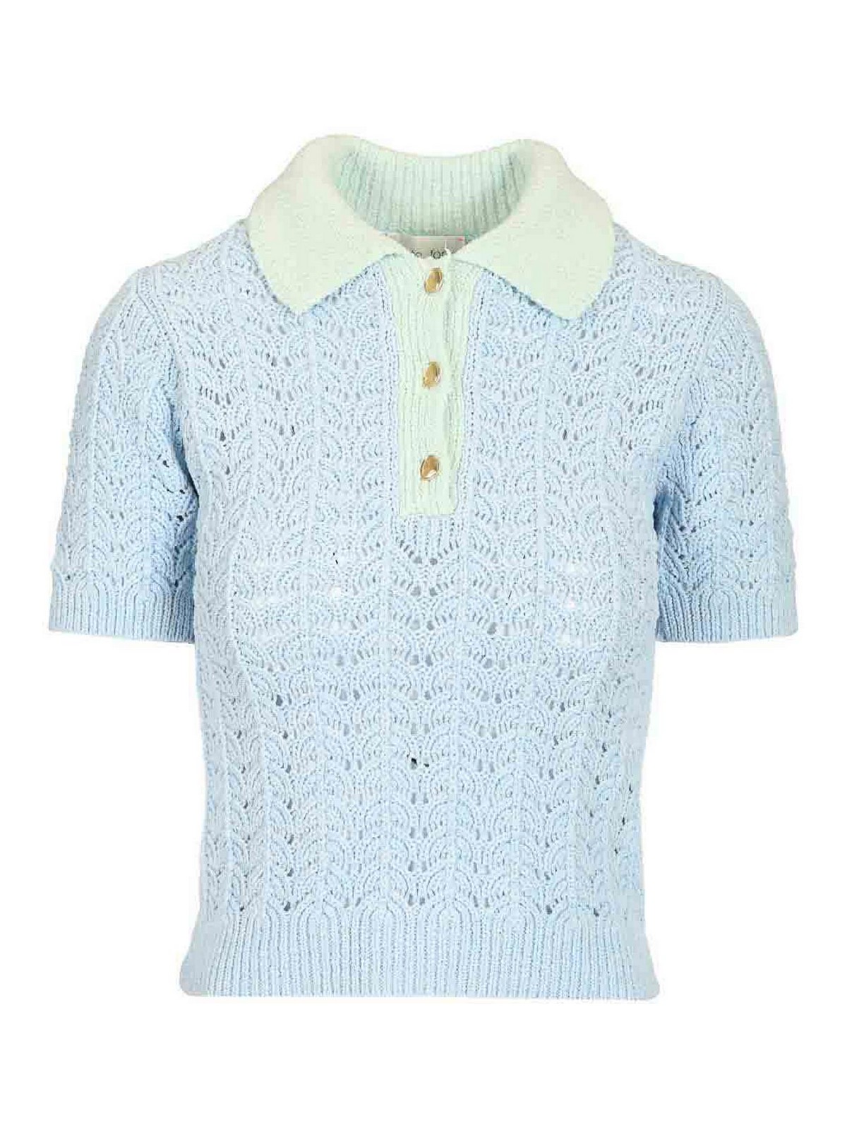 Elegantes Poloshirt aus Baumwollgarn mit Häkeleffekt von Forte Forte mit kurzen Ärmeln, Schwammstich und Schmuckknöpfen