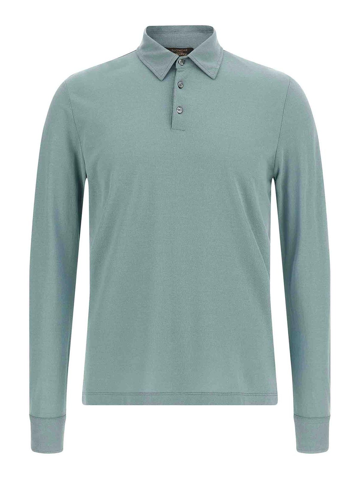 Poloshirt aus Baumwolljersey in Eisbaumwolle mit Kragen und Knöpfen, langen Manschettenärmeln und Seitenschlitzen.
