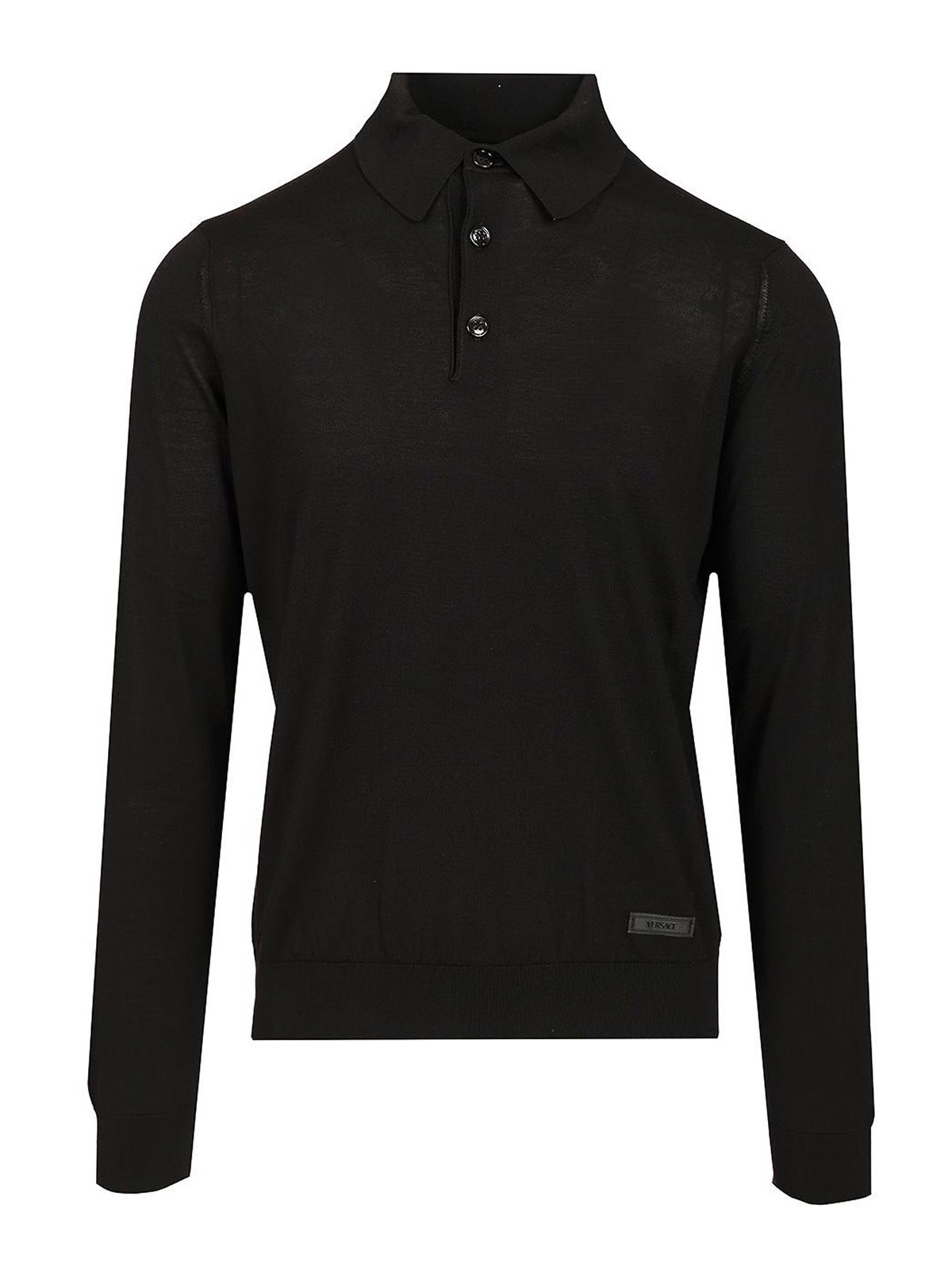 Langärmliges Poloshirt von Versace und Blend mit drei Knöpfen, Knopfleiste und spitzem Kragen