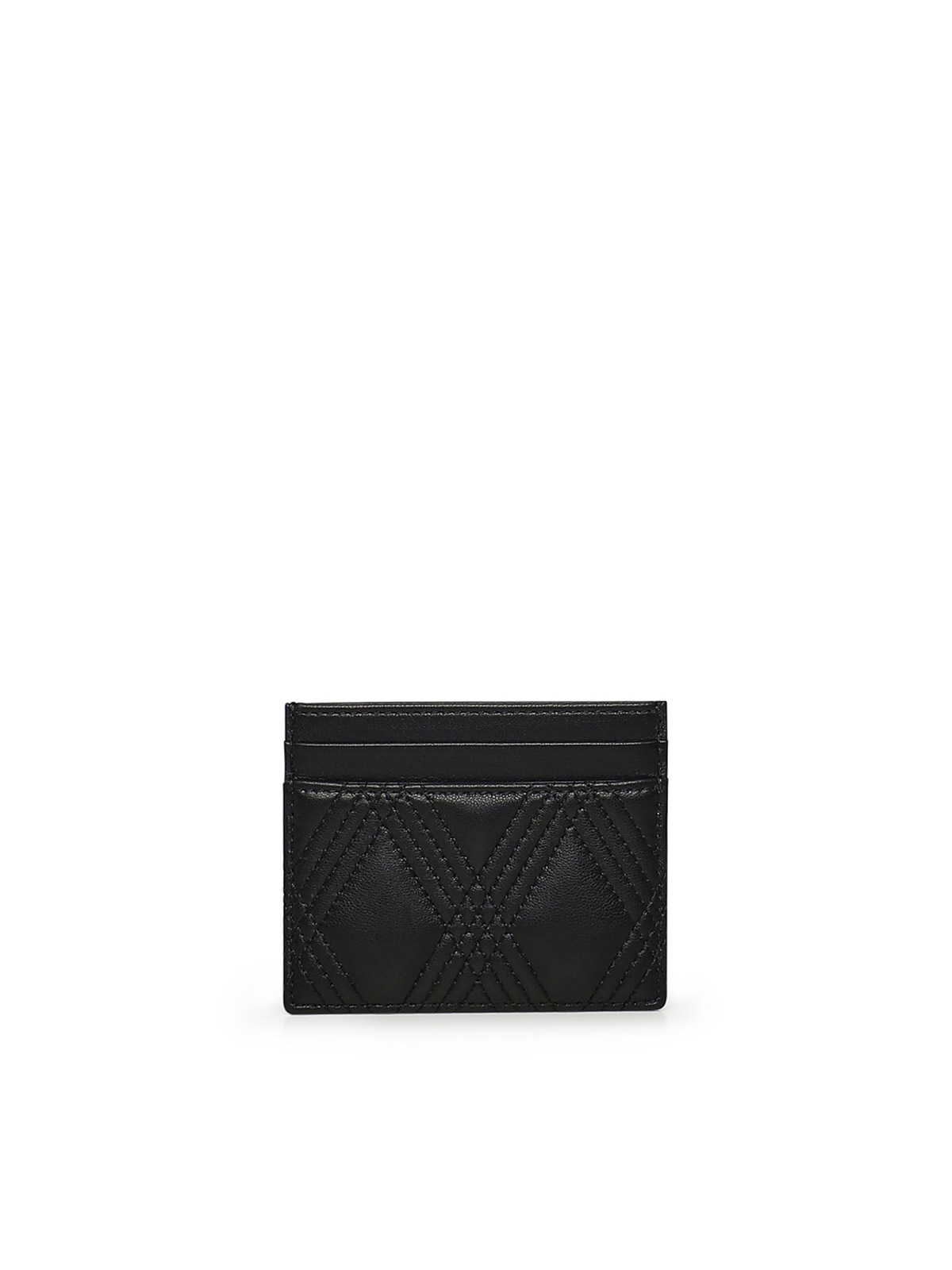 gefertigt aus Nappaleder, eine Mitteltasche, vier Kartenfächer, hergestellt in Italien, Maße: 10 x 8 x 0,5 cm, Farbe: schwarz