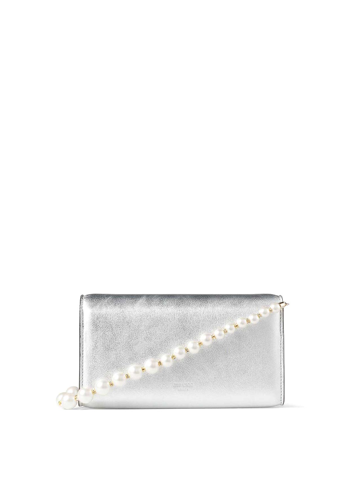 Avenue Geldbörse mit Kette von Jimmy Choo mit silberfarbenen Details, Verzierung, goldfarbener Logoplakette, einzelne Oberseite, Faltoberteil mit magnetischem Hauptfach, eingeprägtem Logo und Tasche mit Reißverschluss