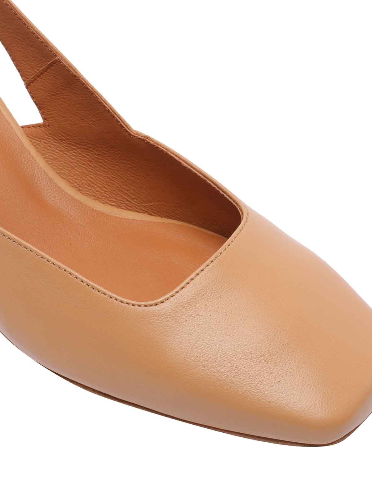 Kamelfarbene Pumps, hinten offen, seitliche Schnalle, quadratische Zehenpartie, EU-Größe