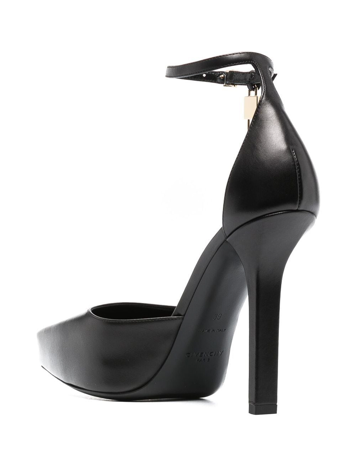schmaler Glock-Riemen aus Kalbsleder mit spitzer Zehenpartie und goldfarbener G-Lock-Schnalle und Vorhängeschloss, dünner, überzogener Absatz, innere Zehenpartie mit Givenchy-Signatur, 4G-Absatzhöhe