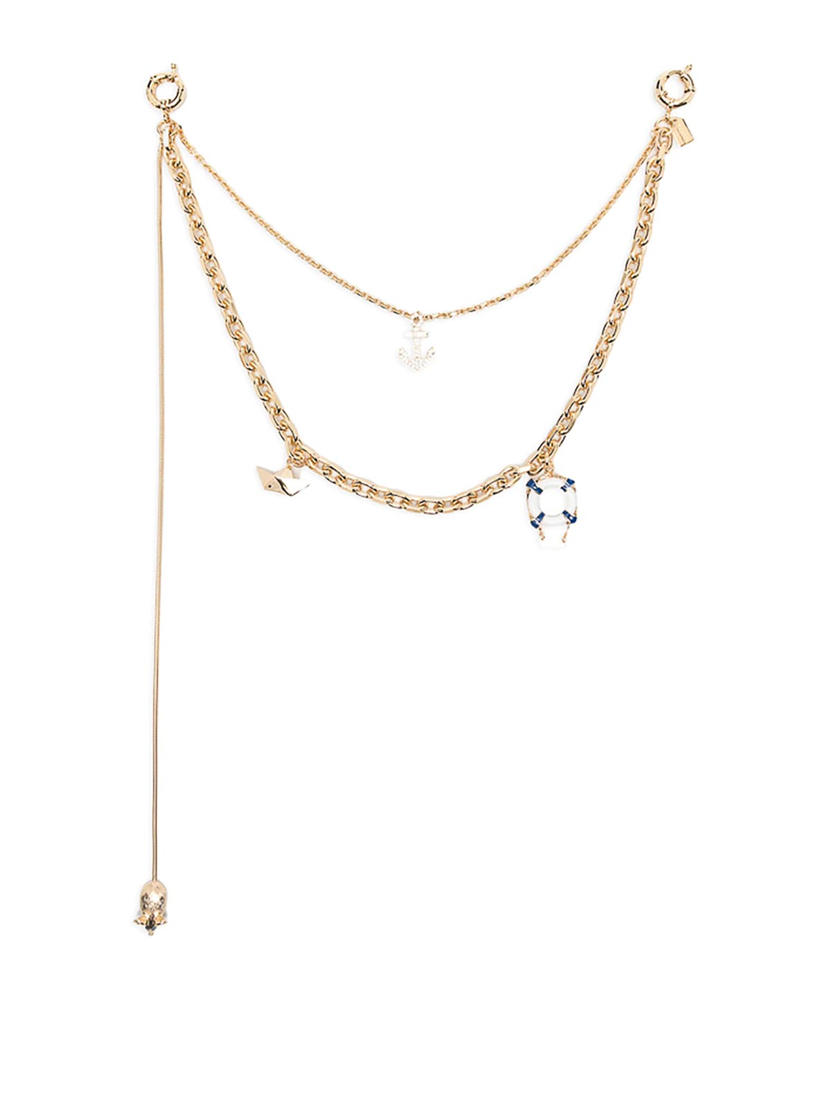 Goldener Anhänger mit Kette und Federring, mehrreihiger Mausanhänger. Dieses Stück wird komplett mit einem schützenden Staubbeutel geliefert.