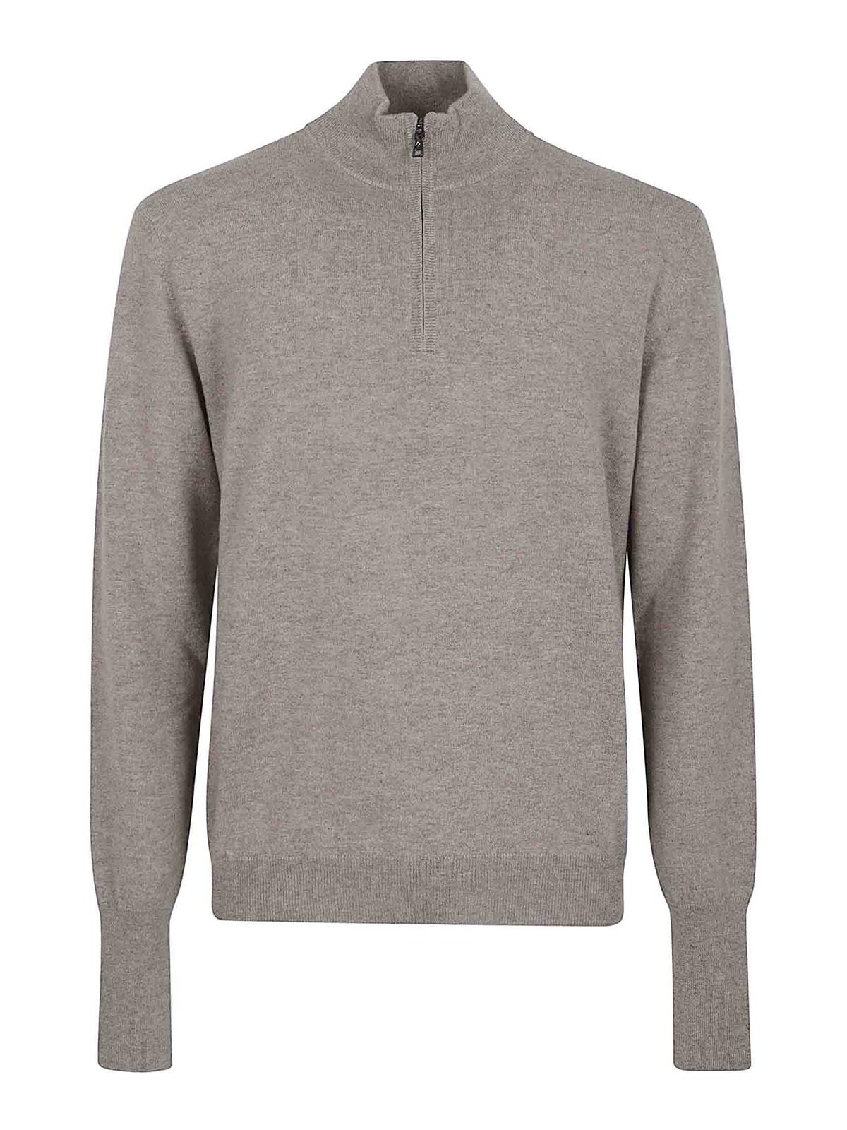 Pullover aus reinem Kaschmir von Ballantyne, Stehkragen, lange Ärmel, gerippter elastischer Ausschnitt, Saum und Bündchen. Mit halbem Reißverschluss.