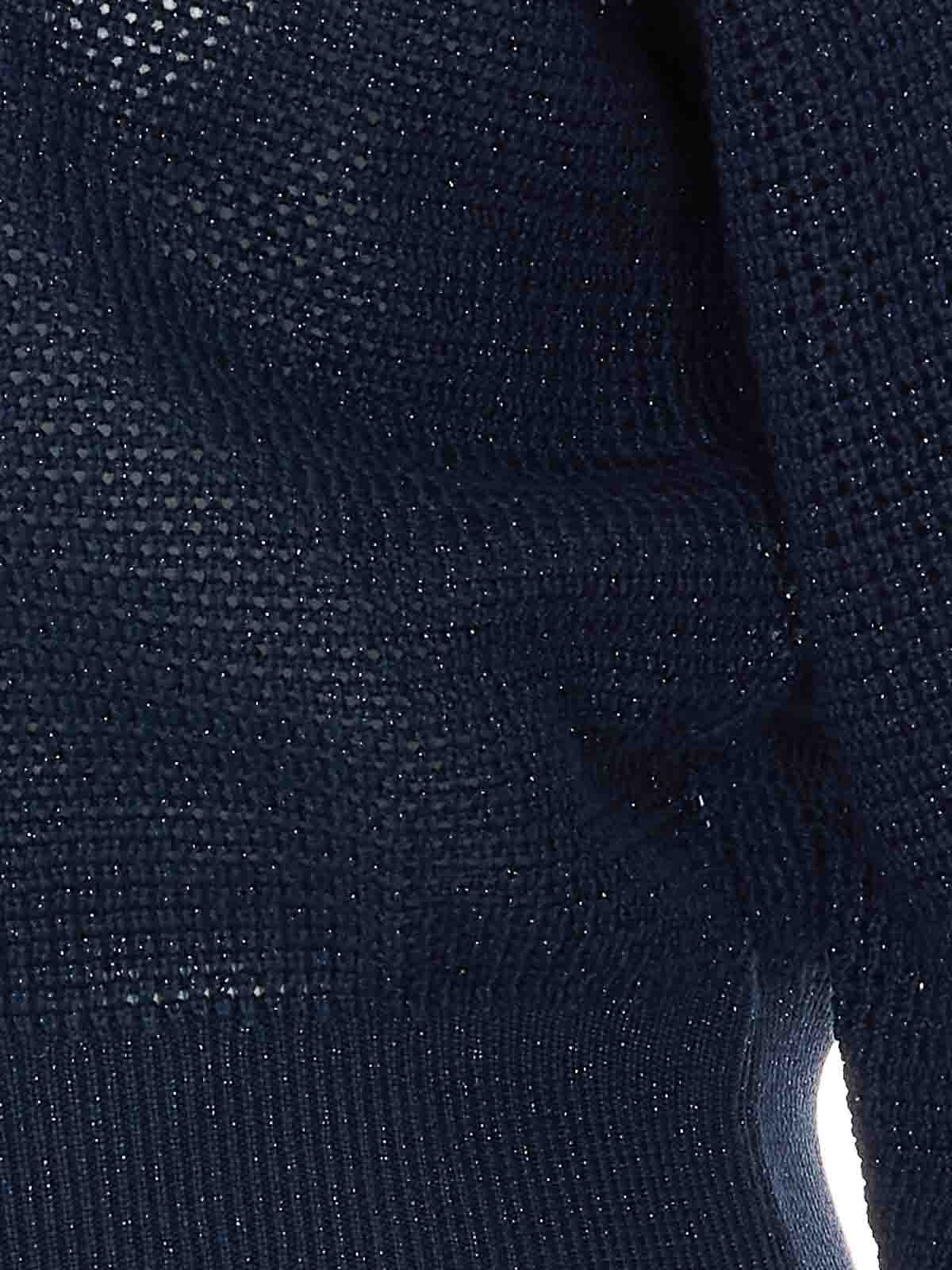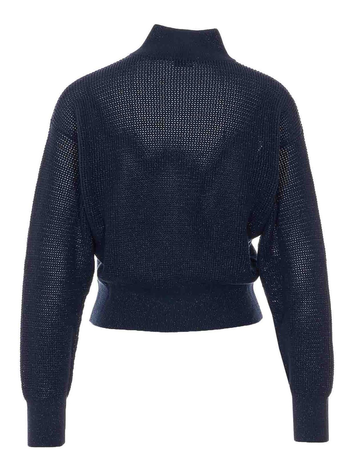 Blauer Cardigan von Brunello Cucinelli mit halbem Reißverschluss, Stehkragen, Lurex, Mesh, lange Ärmel