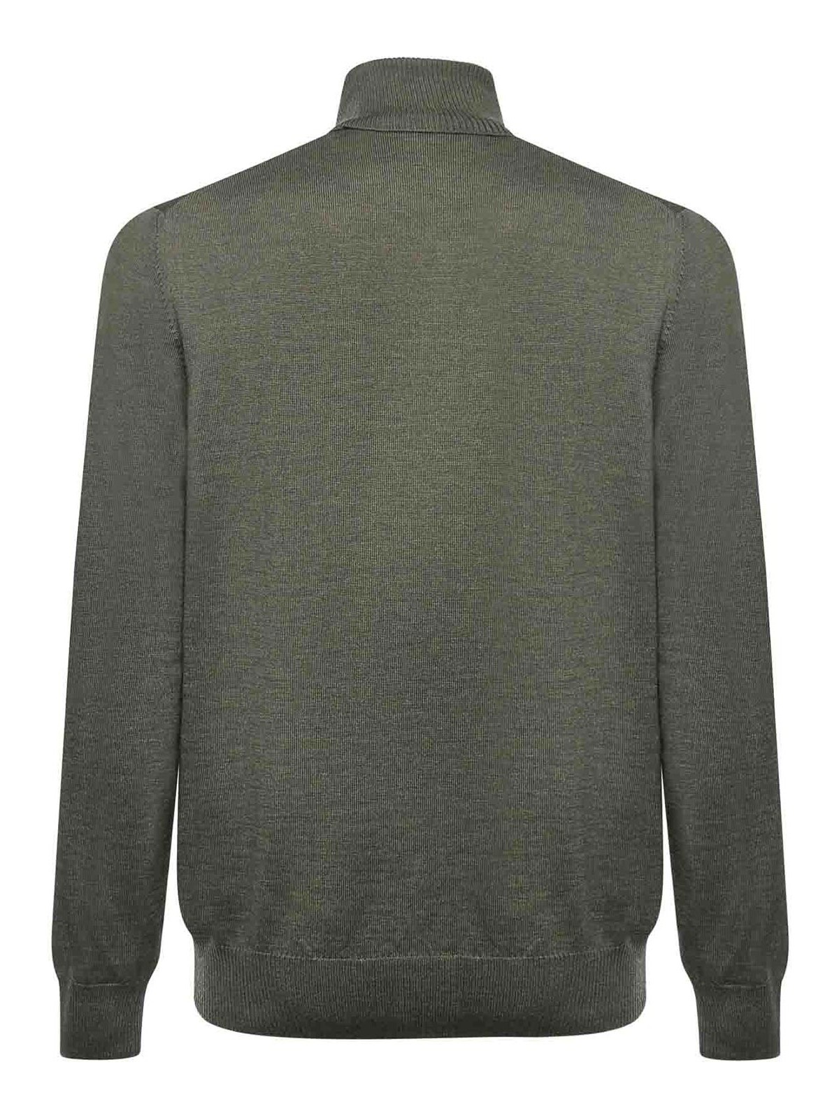 Hergestellt aus schlichtem Wollstrick, Stehkragen, lange Ärmel, Logo-Patch an der Unterseite, reguläre Passform, hergestellt in Italien, Größe auf dem Foto ist 46, Farbe: grün