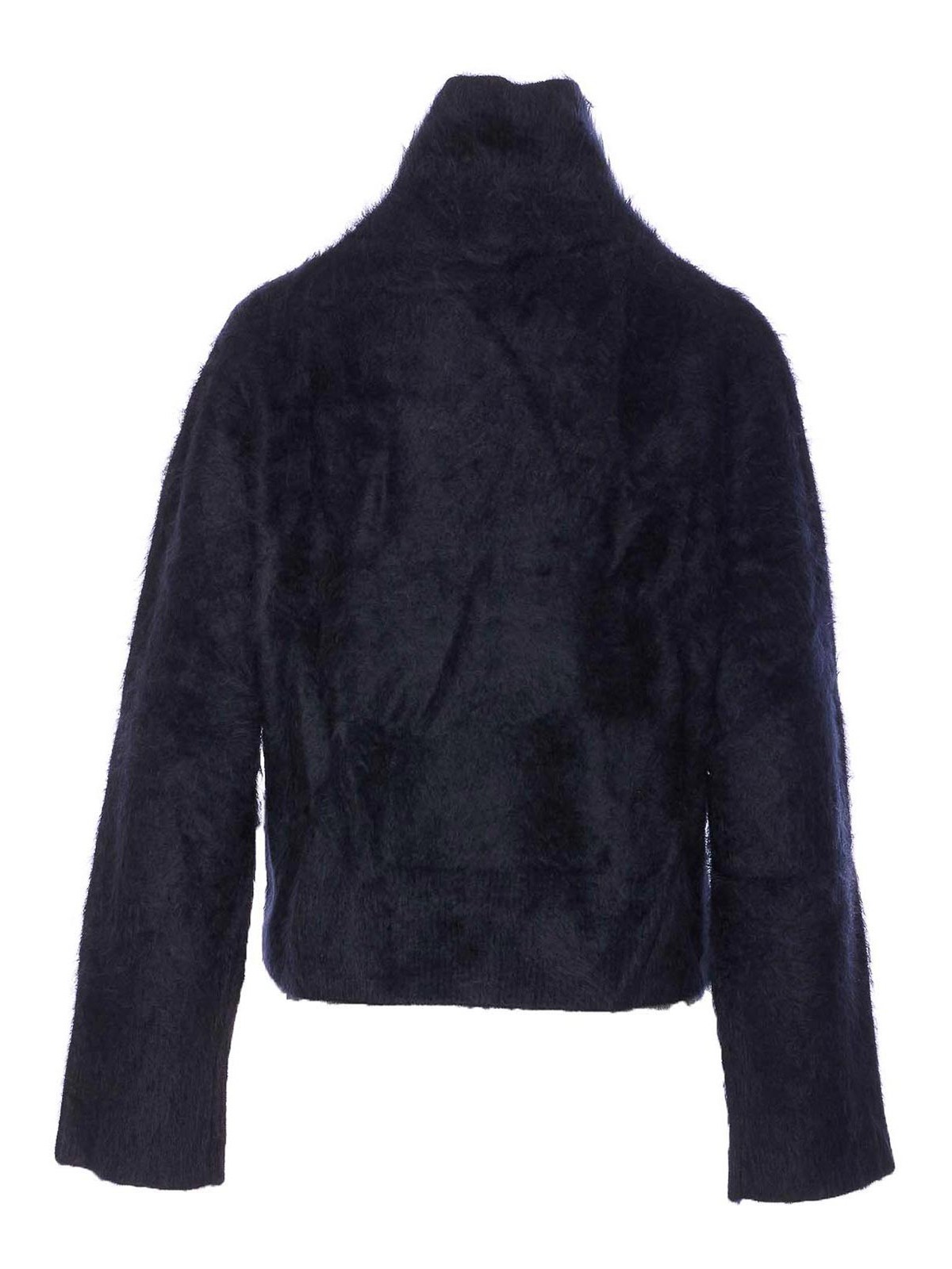 Lisa Yang blauer Floren-Pullover, Stehkragen, lange Ärmel