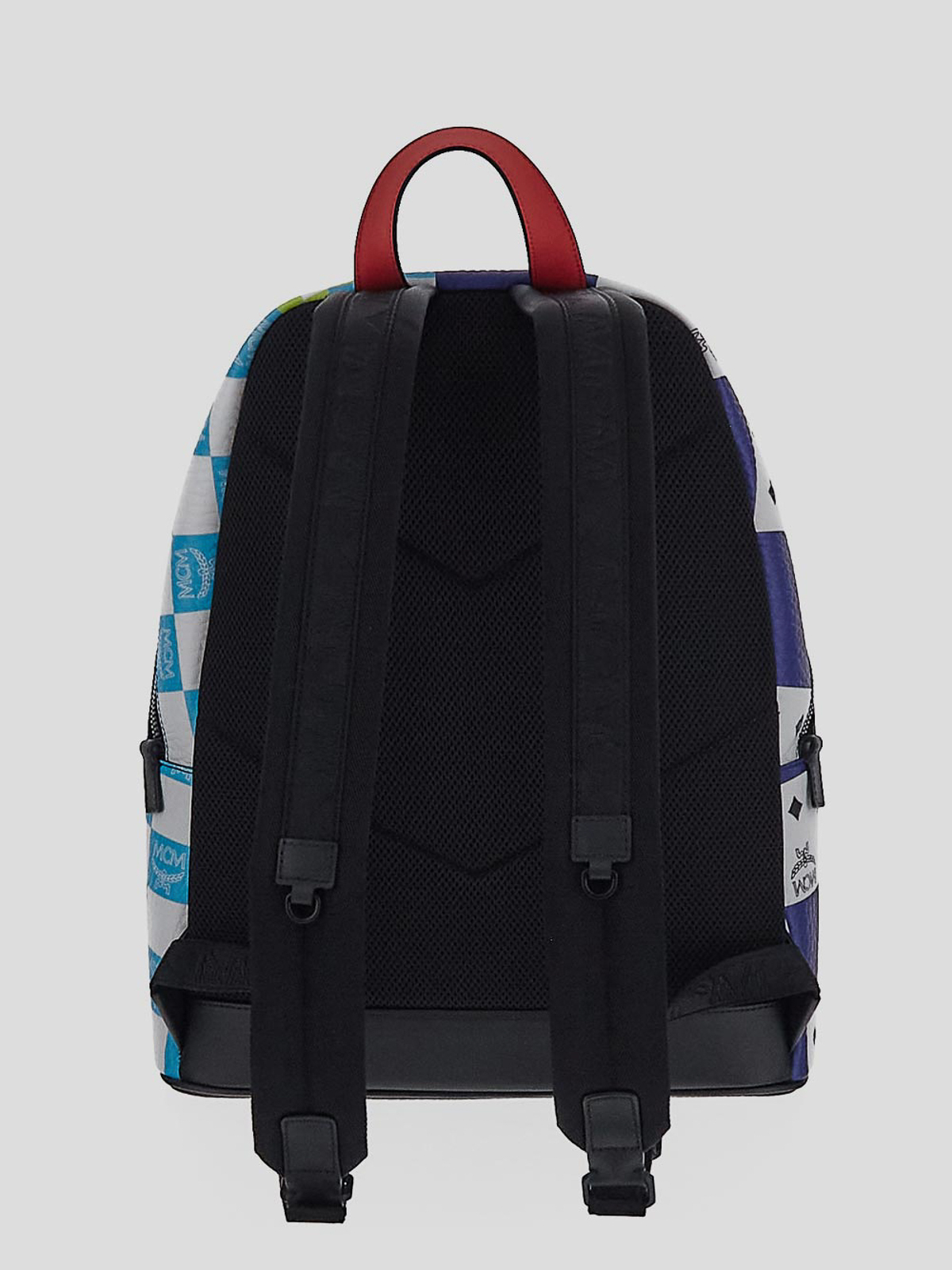 M-Rucksack aus mehrfarbigem Polyurethan mit Visetos-Print im Schachbrettmuster