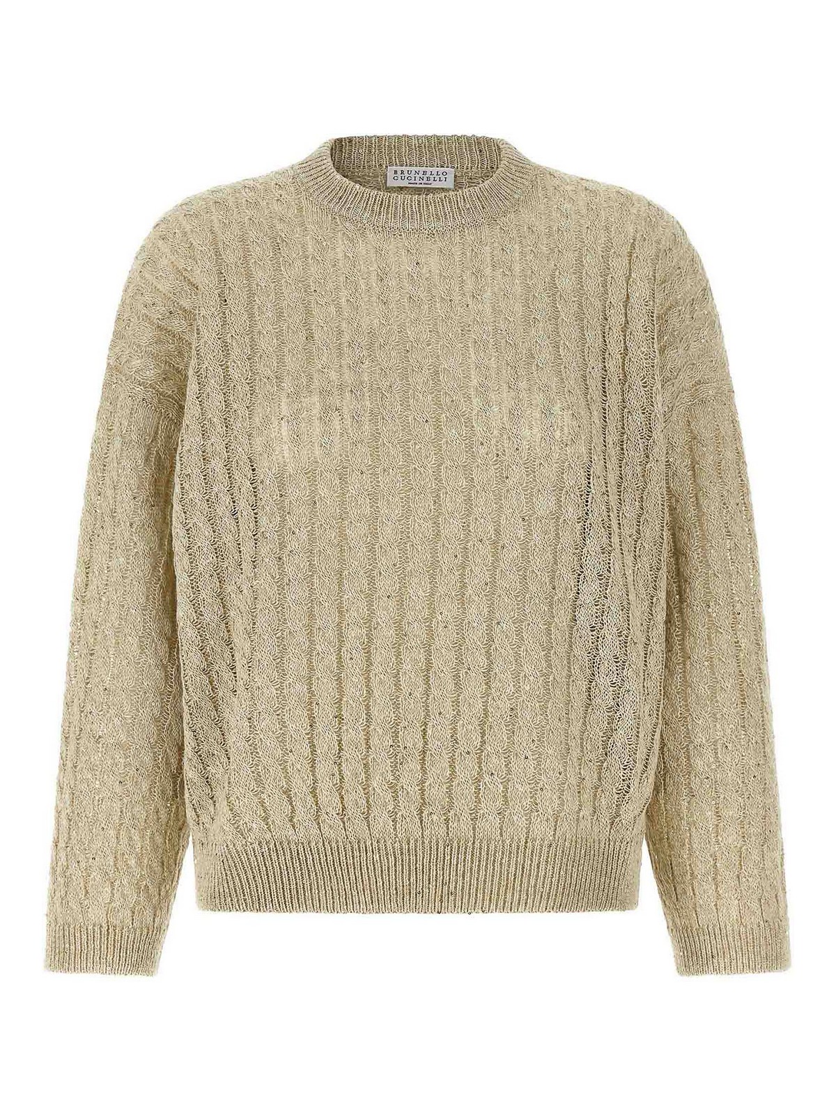 BRUNELLO CUCINELLI: Strickpullover mit Rundhalsausschnitt - Rundhalspullover - Beige