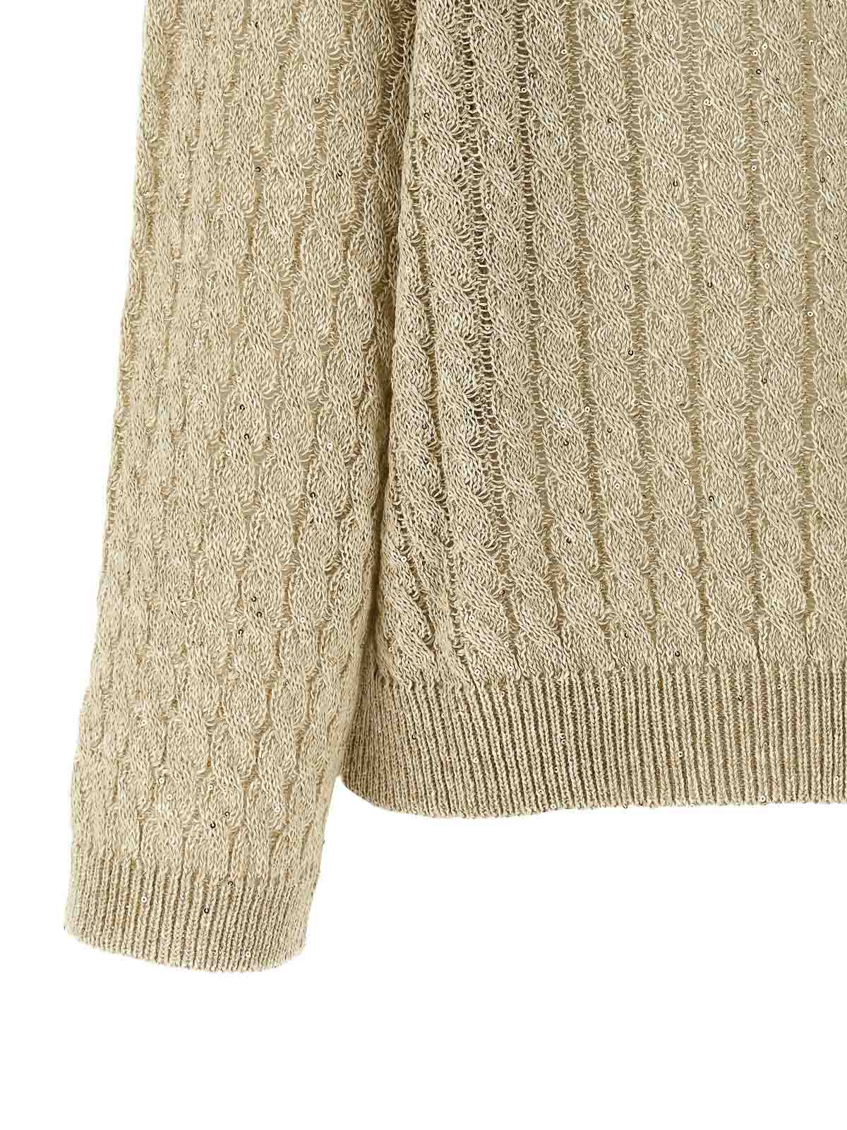 Dazzling Cable' gerippter Leinenpullover mit Lochmuster, geflochtenem Strick und durchgehender Paillettenapplikation, Rundhalsausschnitt, langen Manschettenärmeln und abgesenkter Schulter.