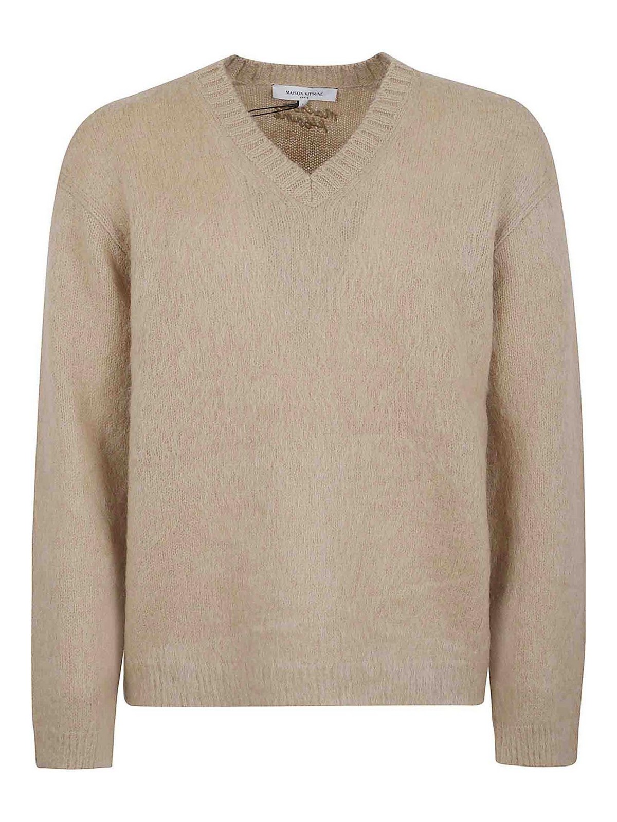 MAISON KITSUNÉ: Strickpullover mit Rundhalsausschnitt - Rundhalspullover - Beige