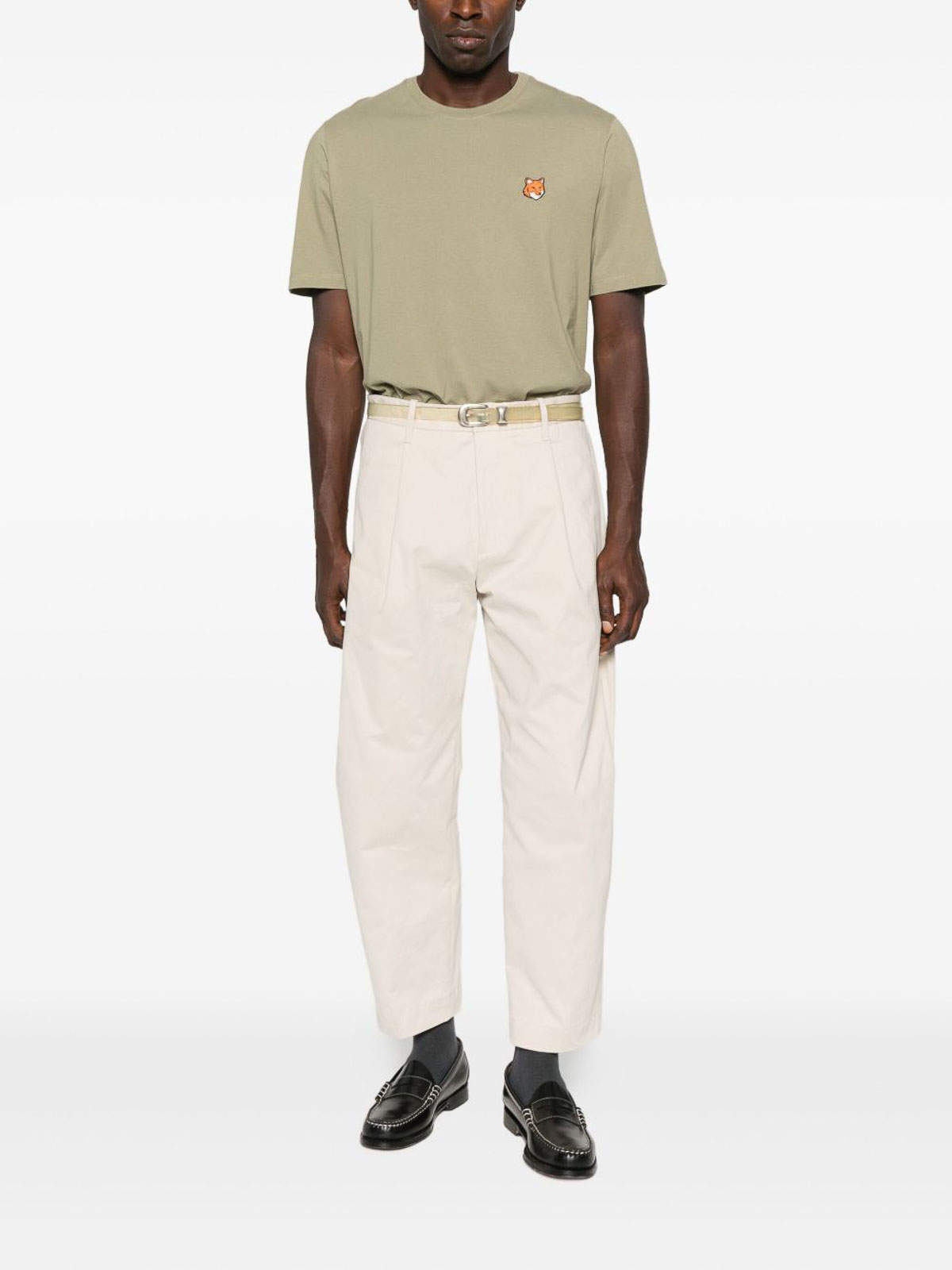 MAISON KITSUNÉ: Strickpullover mit Rundhalsausschnitt - Rundhalspullover - Beige