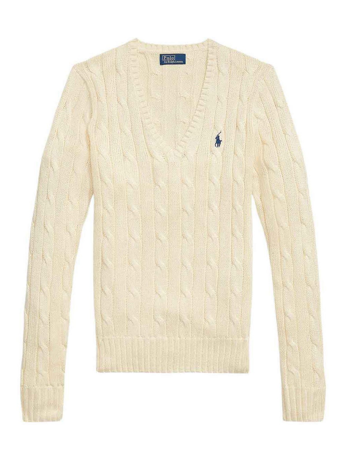 Beiger Pullover mit Zopfmuster und gesticktem Logo von Polo Ralph Lauren