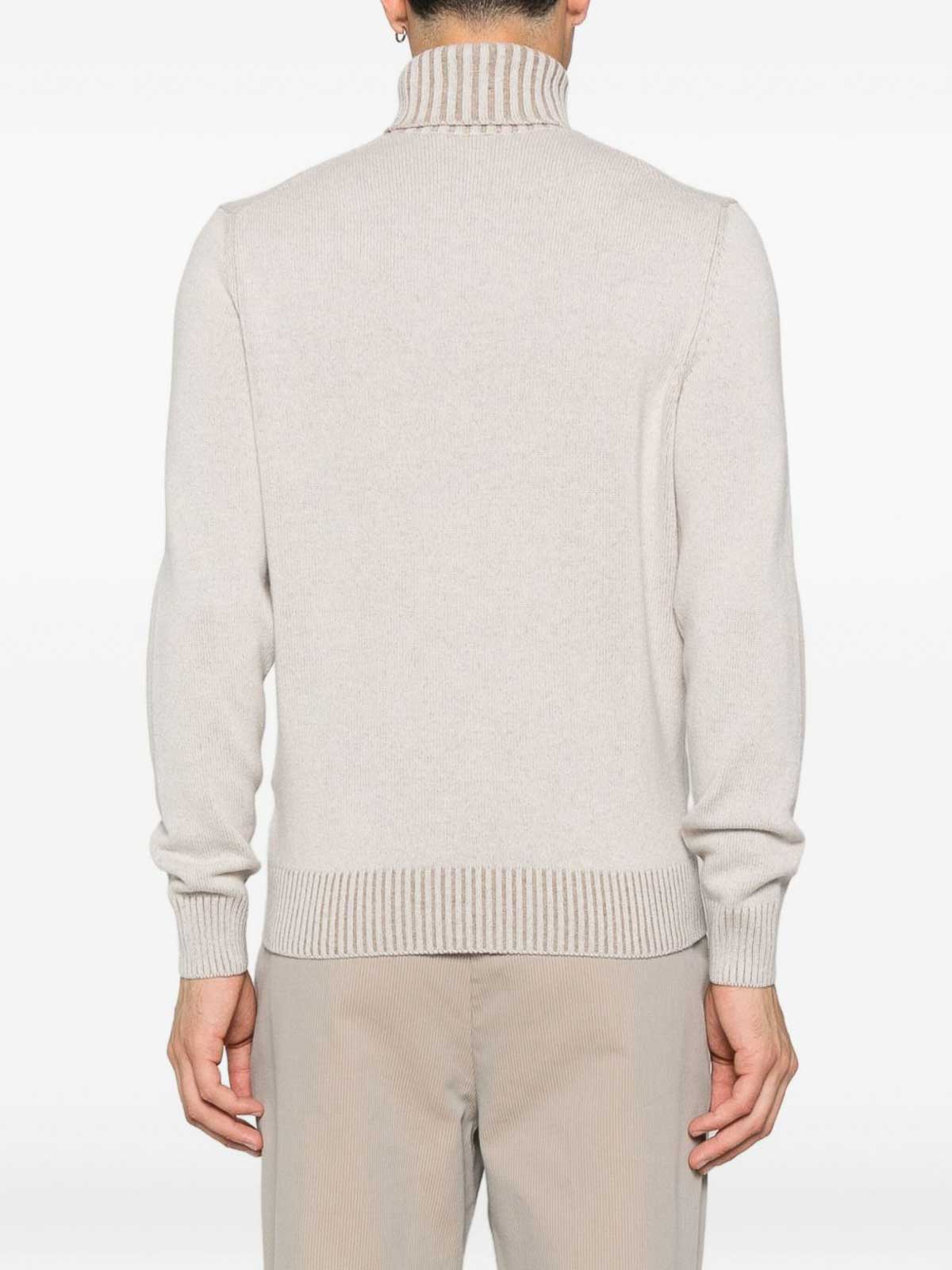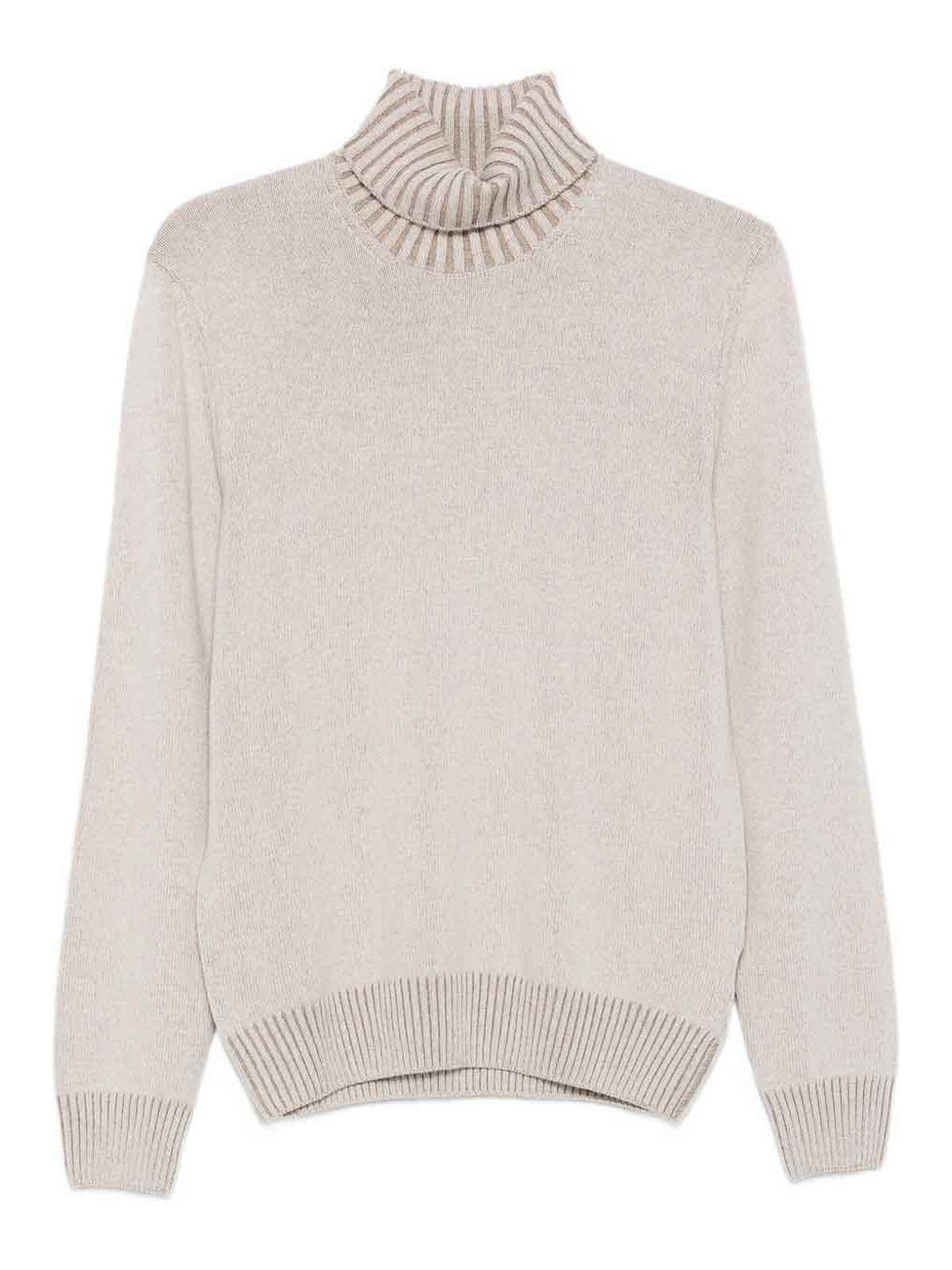 Natürlicher Rollkragenpullover, Rippstrick, lange Ärmel, gerippte Manschetten, gerader Saum