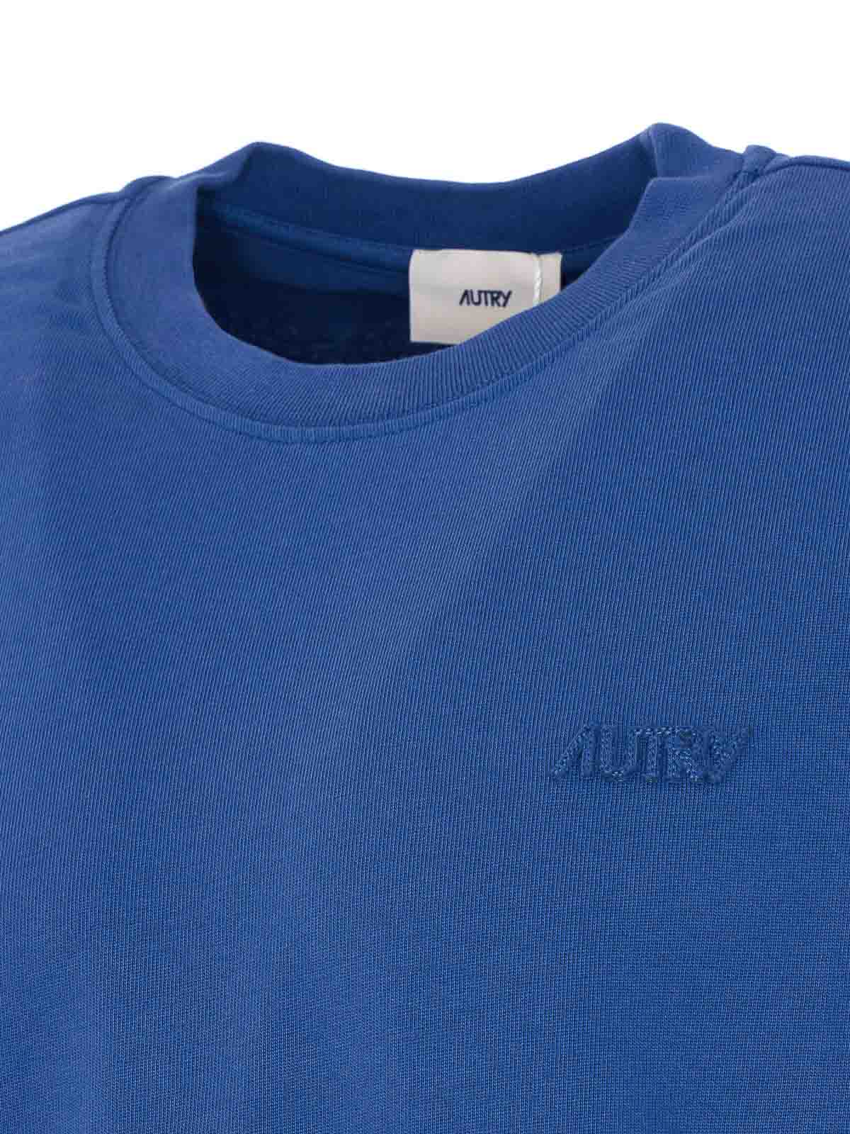Blaues T-Shirt Autry, Rundhalsausschnitt, Logoprägung auf der Vorderseite