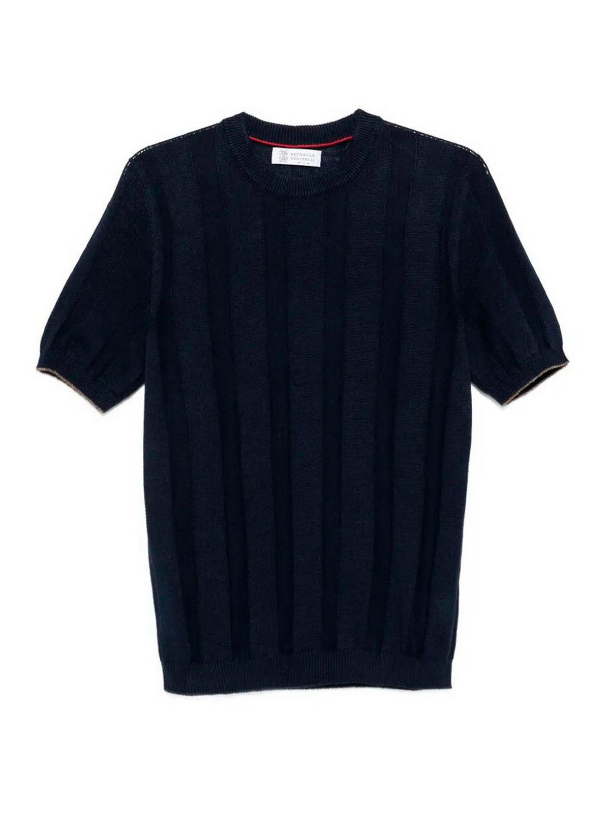 BRUNELLO CUCINELLI: Strickpullover mit Rundhalsausschnitt - Rundhalspullover - Blau