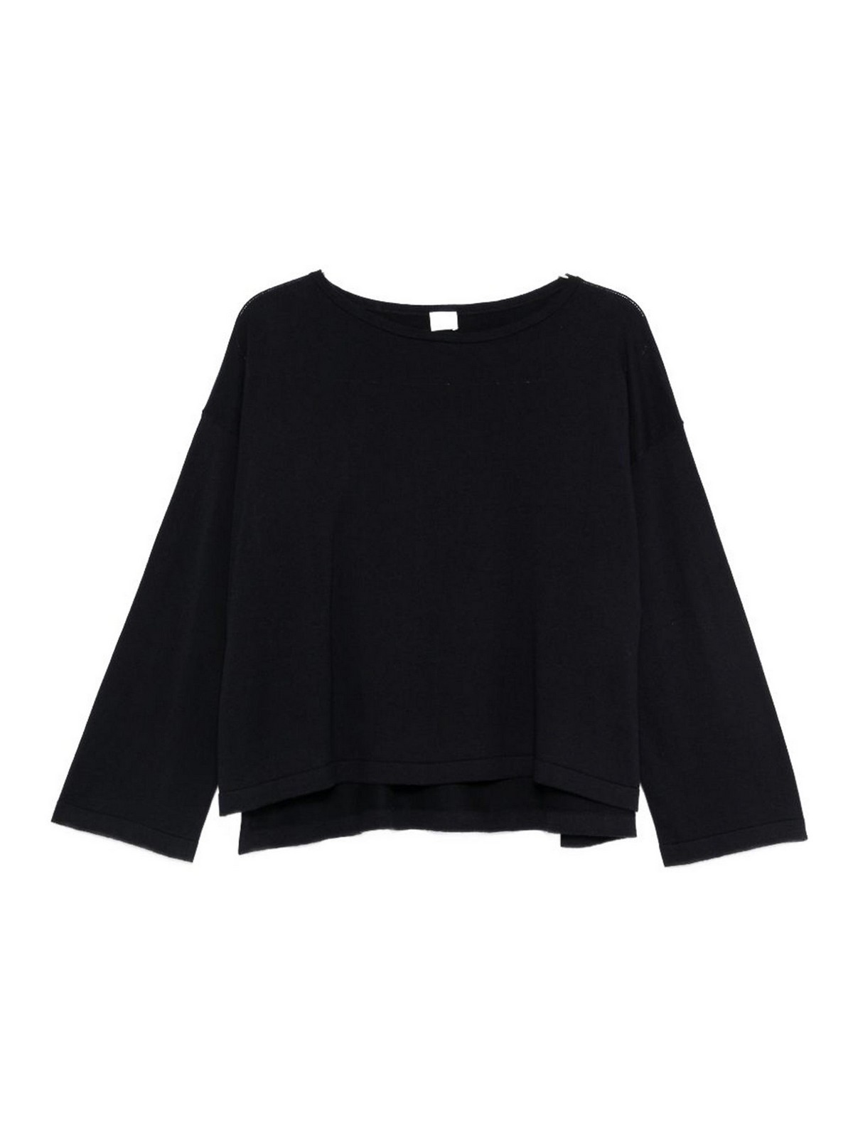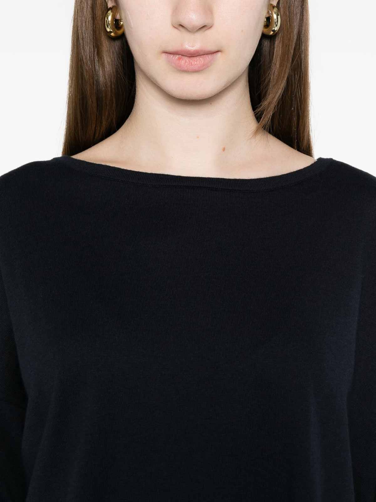 Blaue lange Ärmel mit U-Boot-Ausschnitt