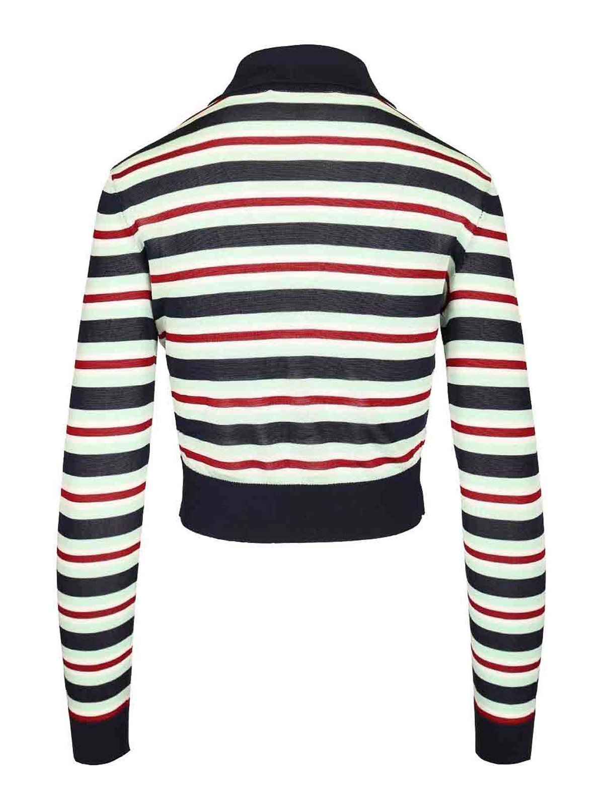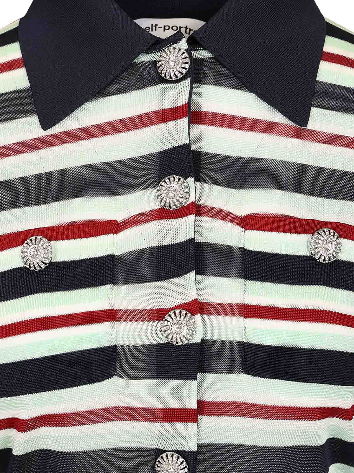 Gestreifter Pullover Self im Portrait-Stil mit geripptem Kragen und Knopf am Saum