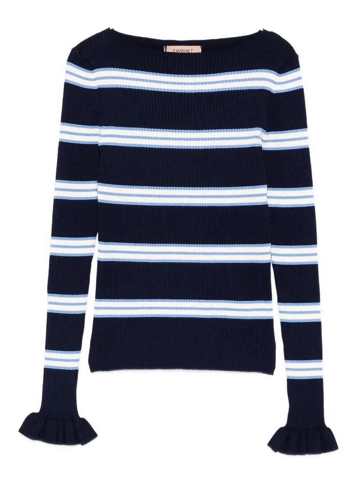 TWINSET: Strickpullover mit Rundhalsausschnitt - Rundhalspullover - Blau