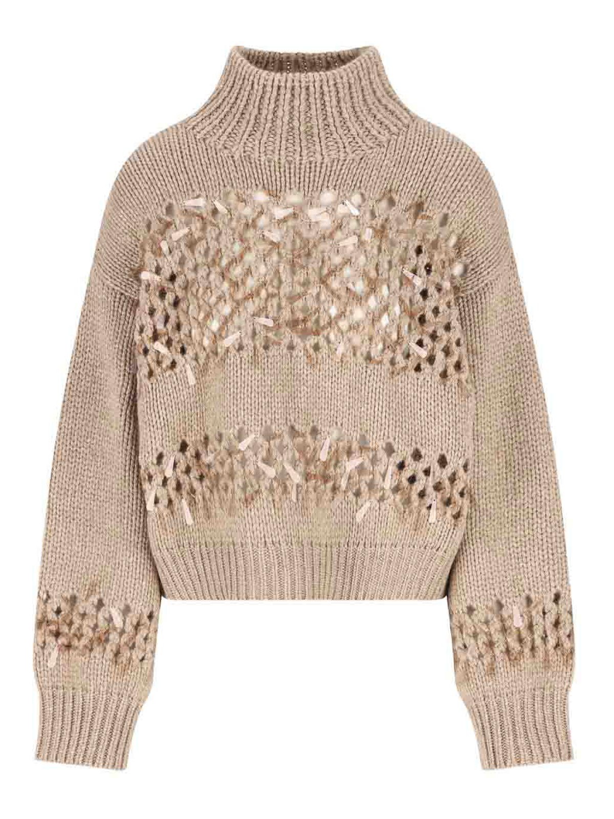 BRUNELLO CUCINELLI: Strickpullover mit Rundhalsausschnitt - Rundhalspullover - Braun