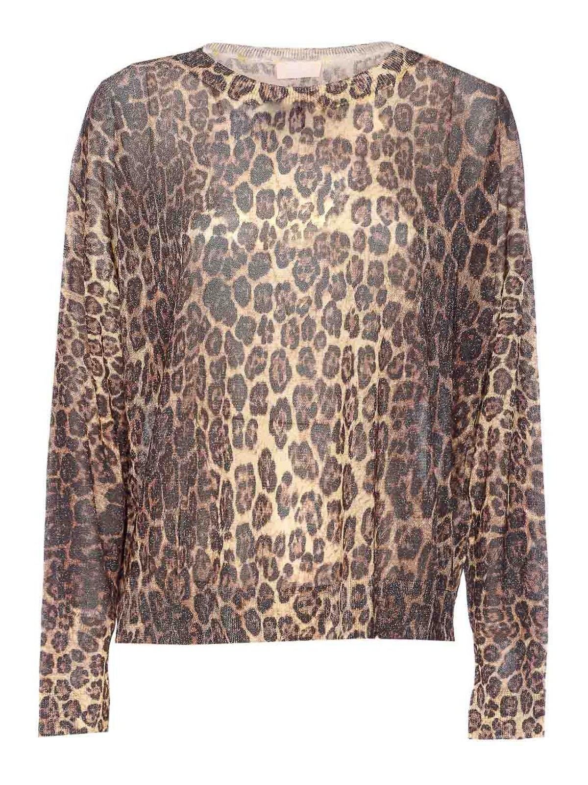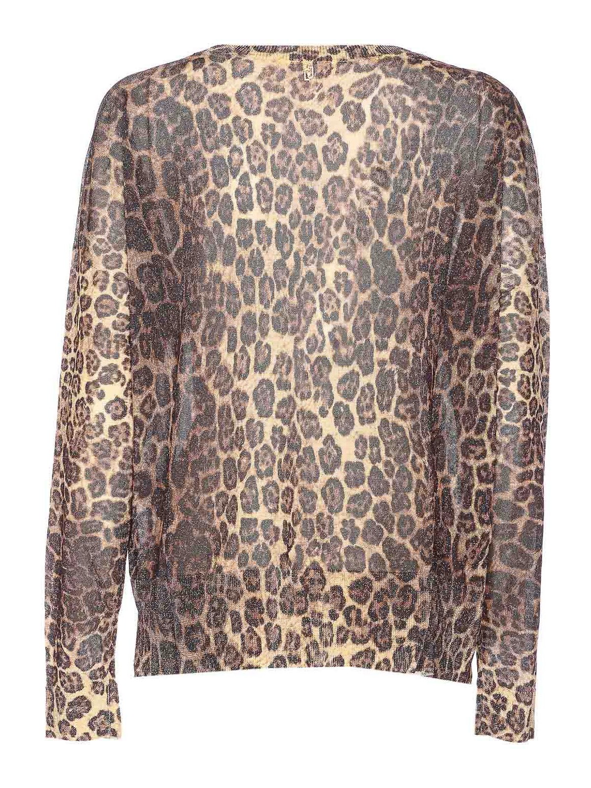 Liu Jo brauner Leopardenpullover, lange Ärmel, Rundhalsausschnitt