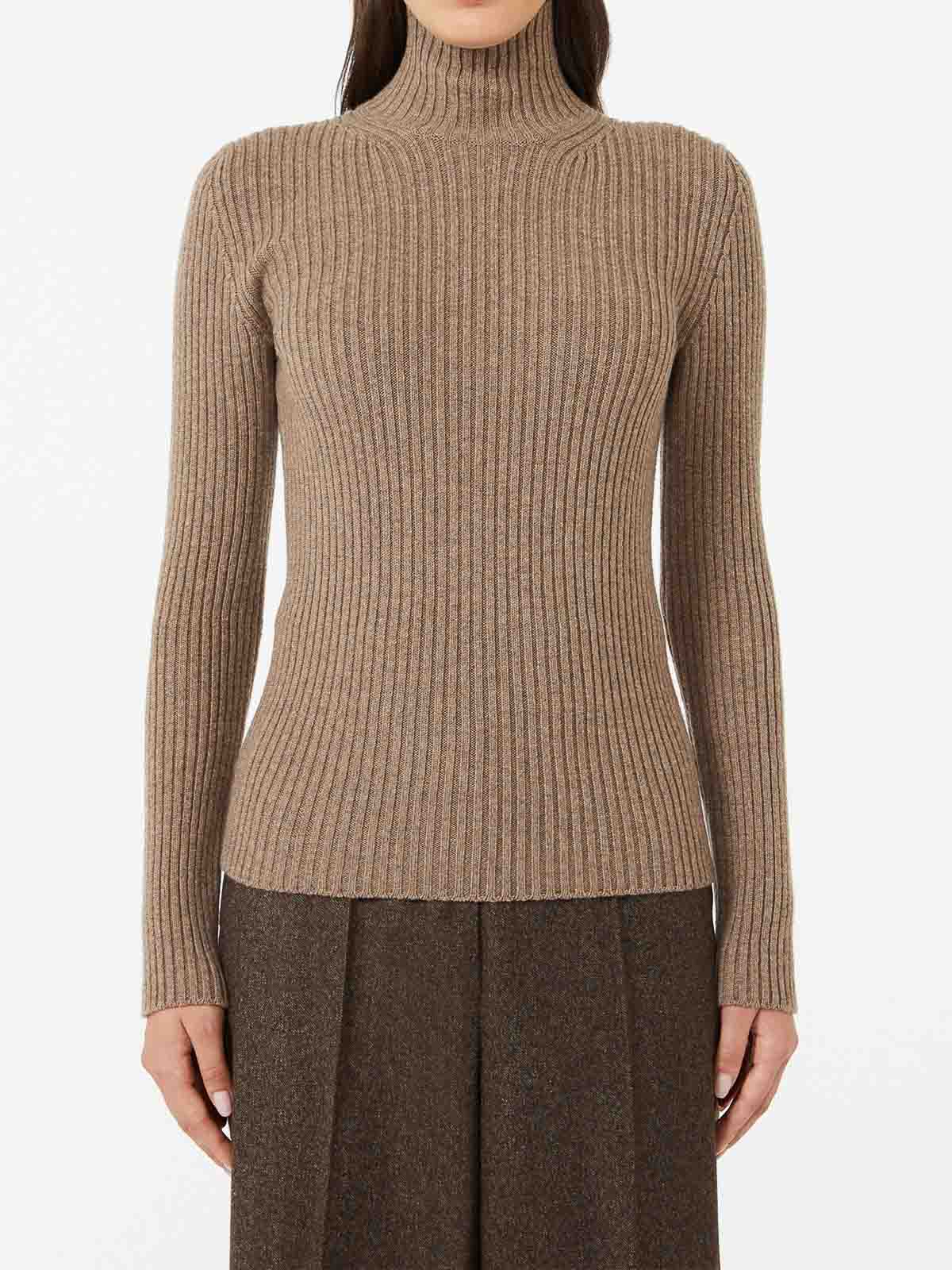 Max Mara: Strickpullover mit Rundhalsausschnitt - Rundhalspullover - Braun