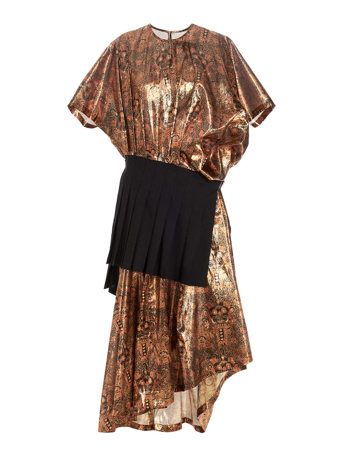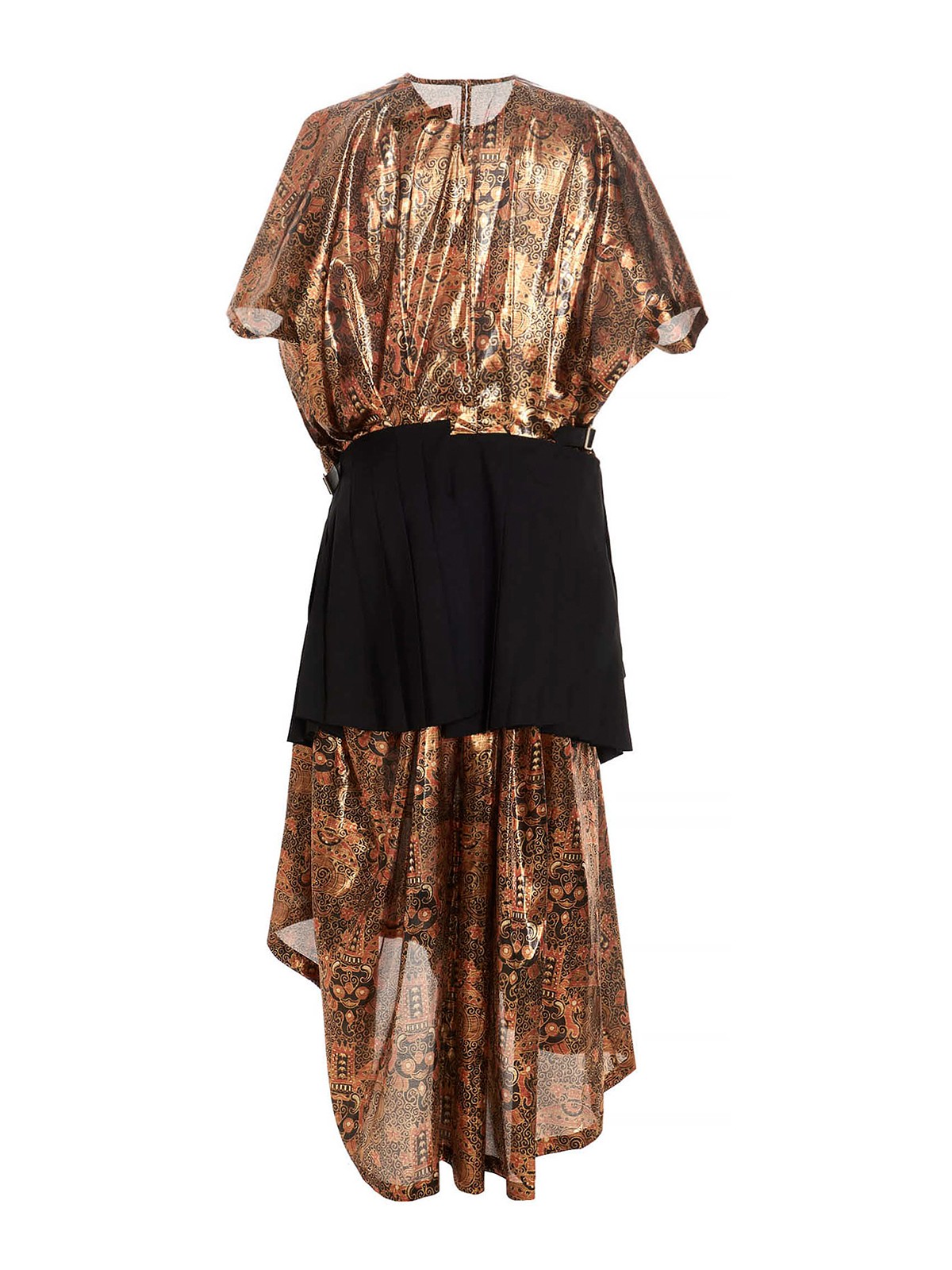 Langes, asymmetrisches Kleid mit Rundhalsausschnitt und kontrastierendem Wolleinsatz