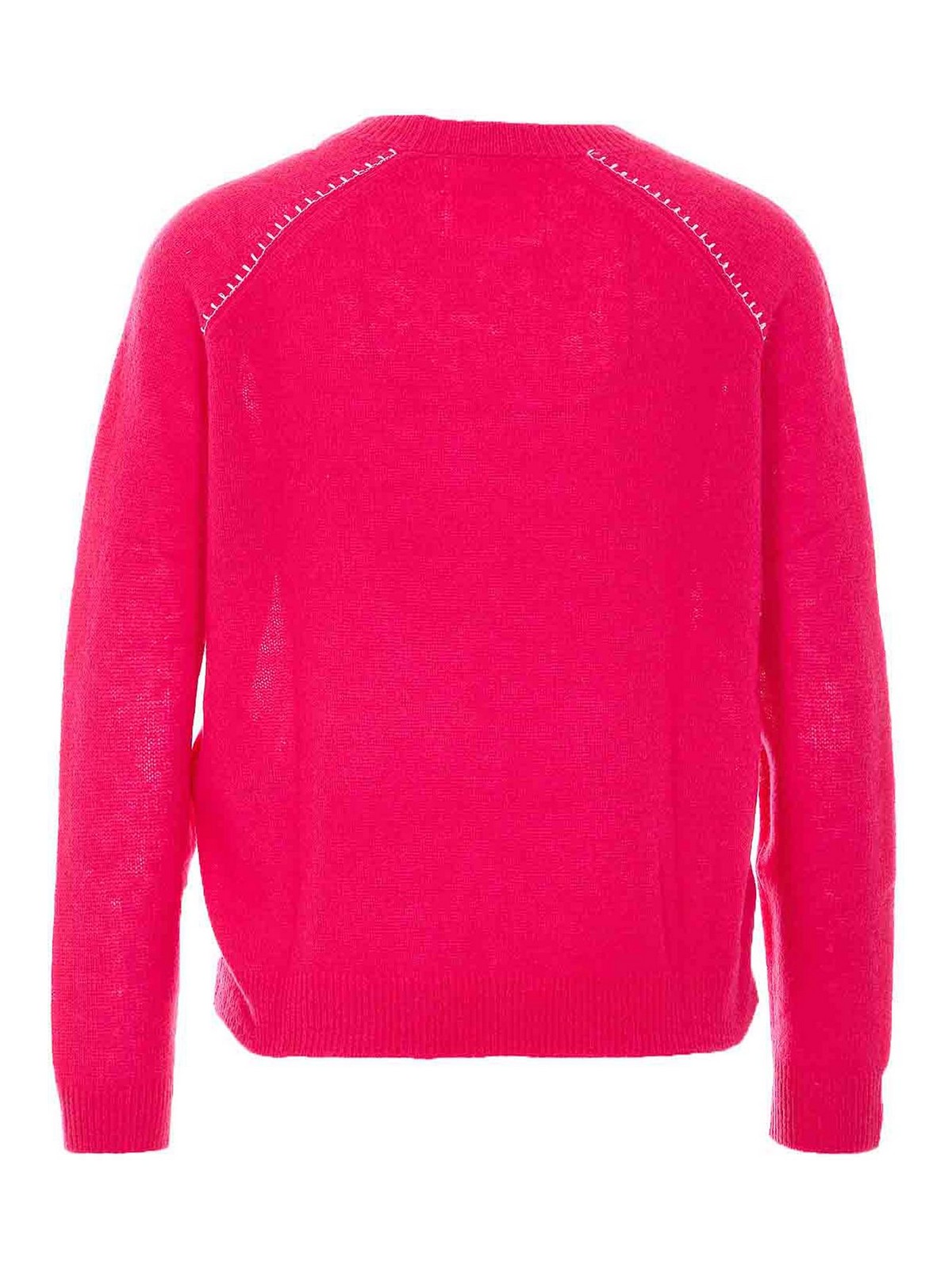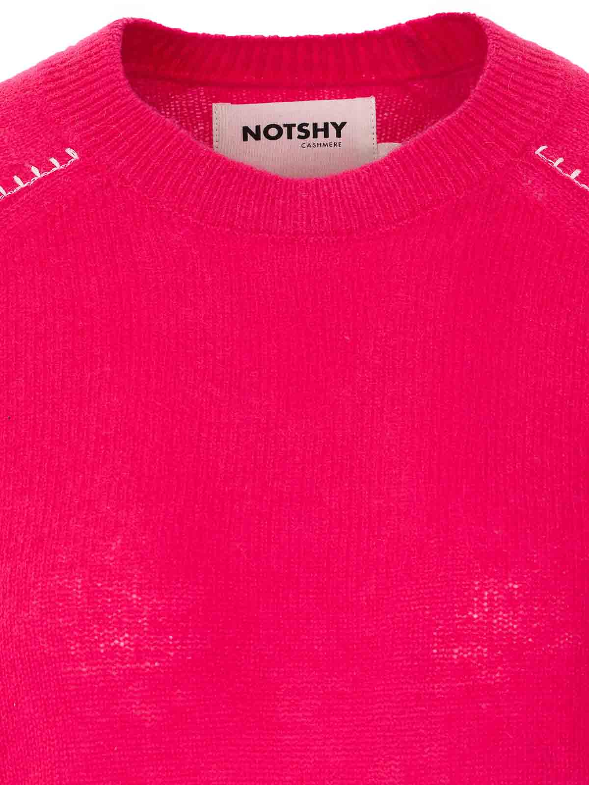 Not Shy Juli-Pullover in Fuchsia, Rundhalsausschnitt, besticktes Detail, lange Ärmel