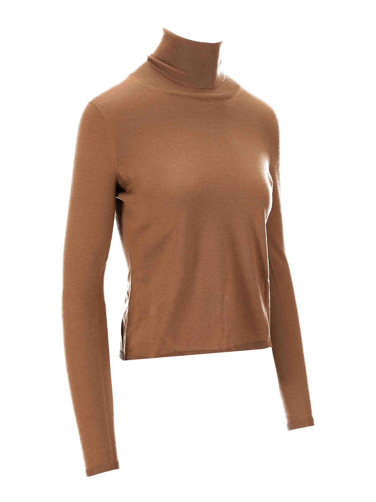 Max Mara: Strickpullover mit Rundhalsausschnitt - Rundhalspullover - Camel