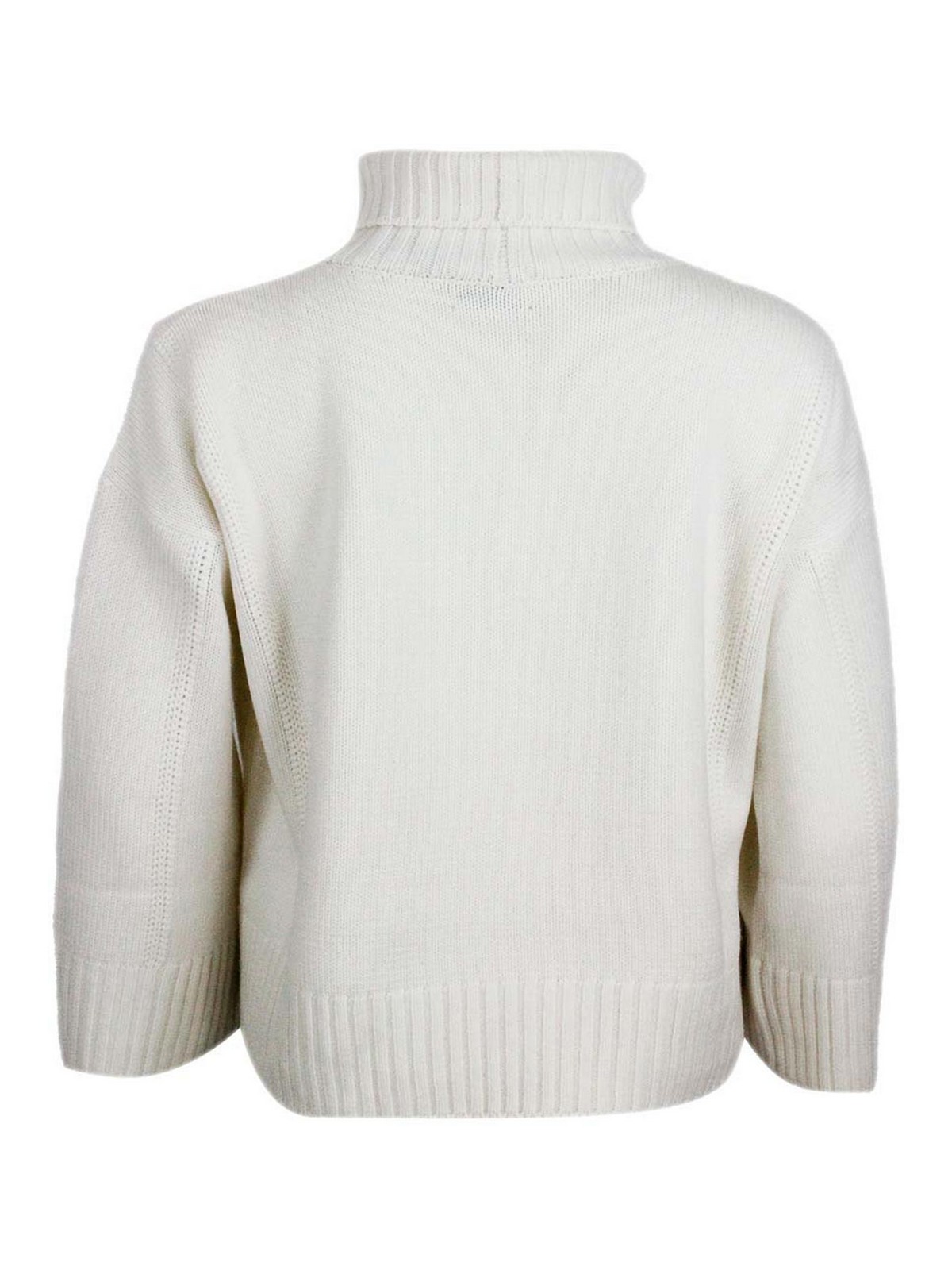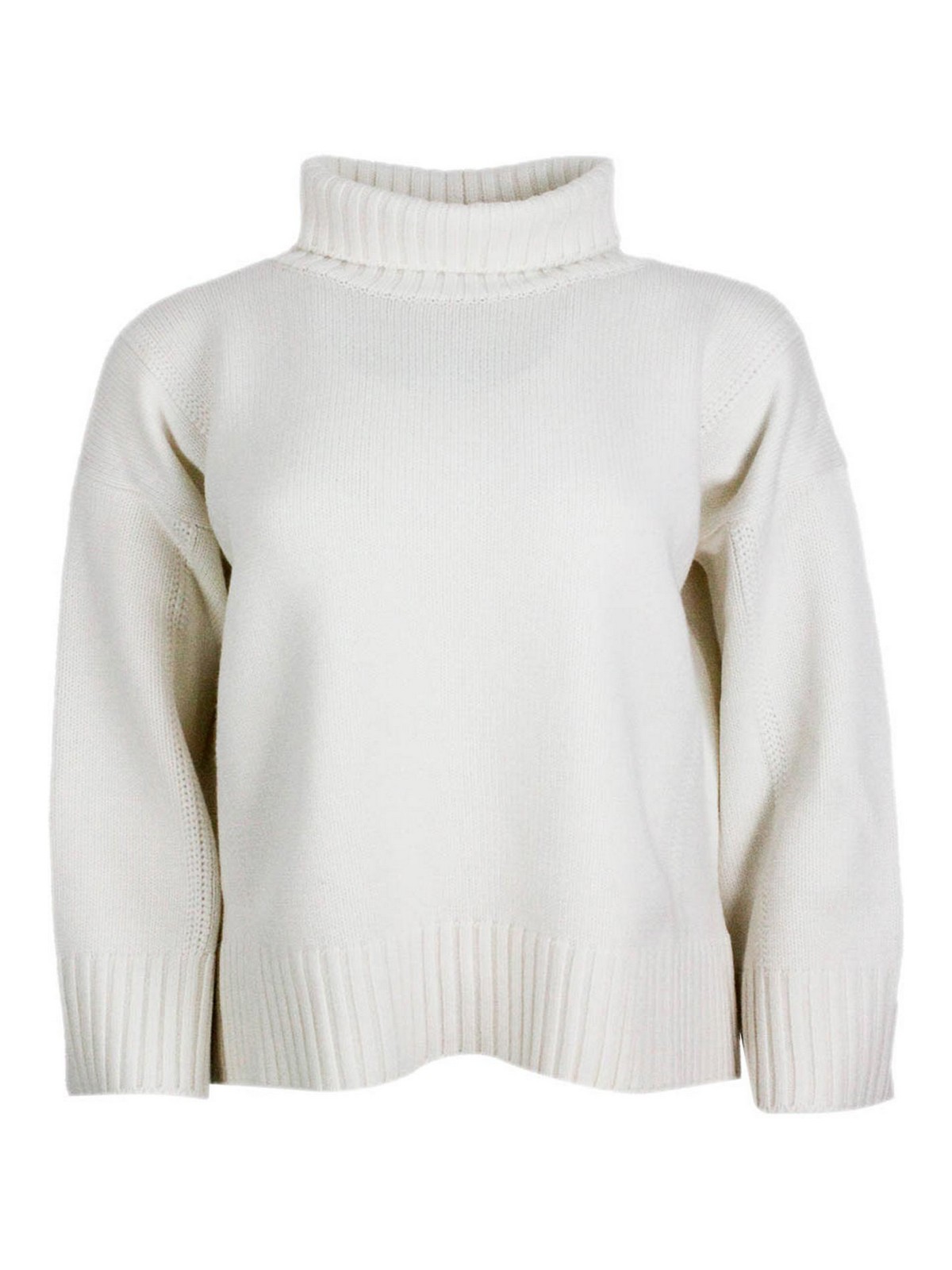 MALO: Strickpullover mit Rundhalsausschnitt - Rundhalspullover - Creme