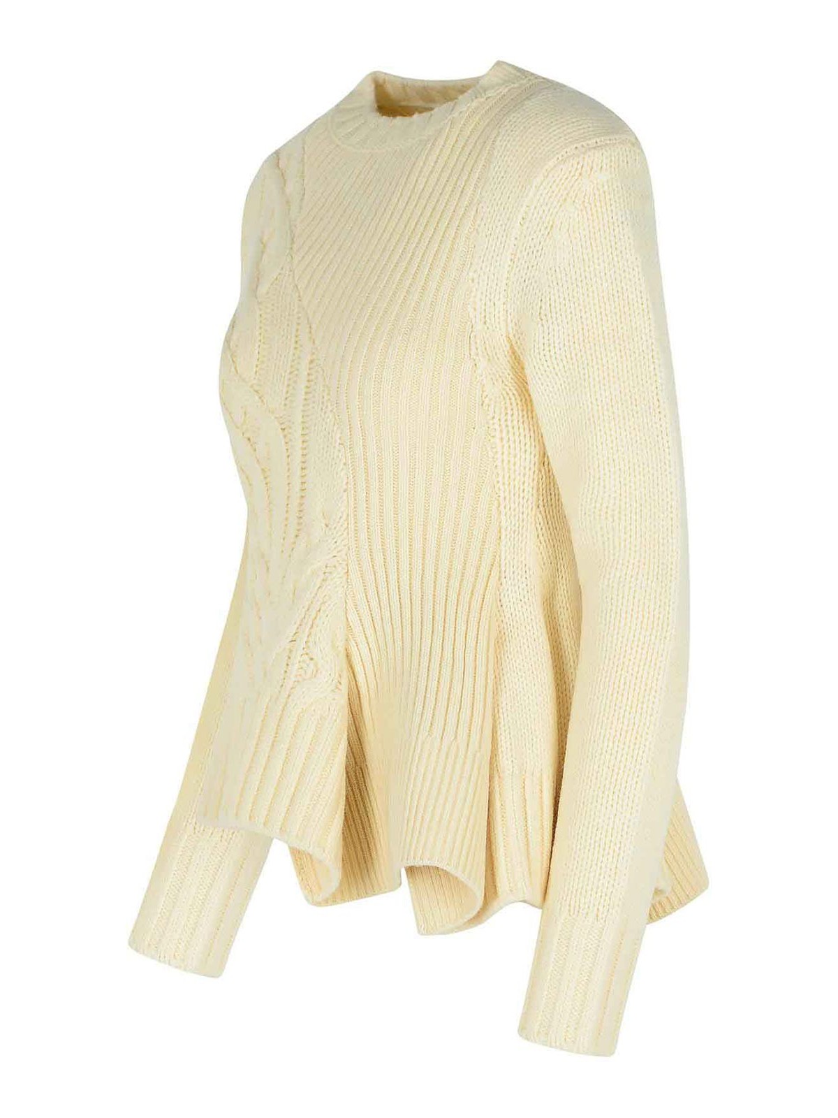 Sacai: Strickpullover mit Rundhalsausschnitt - Rundhalspullover - Creme