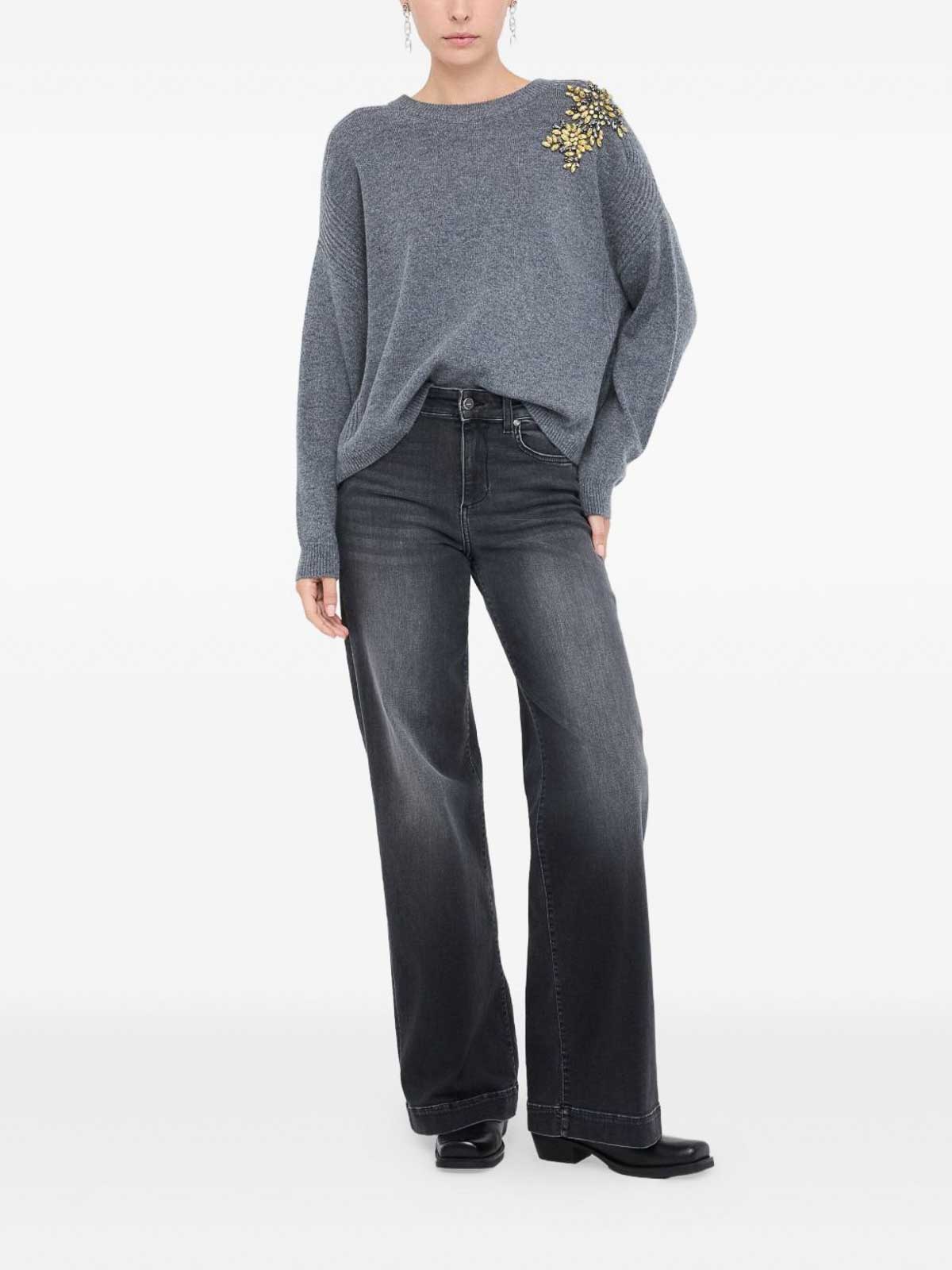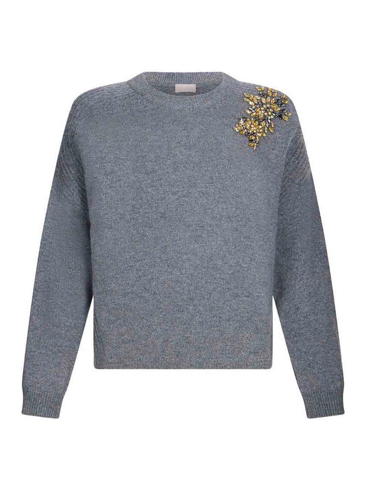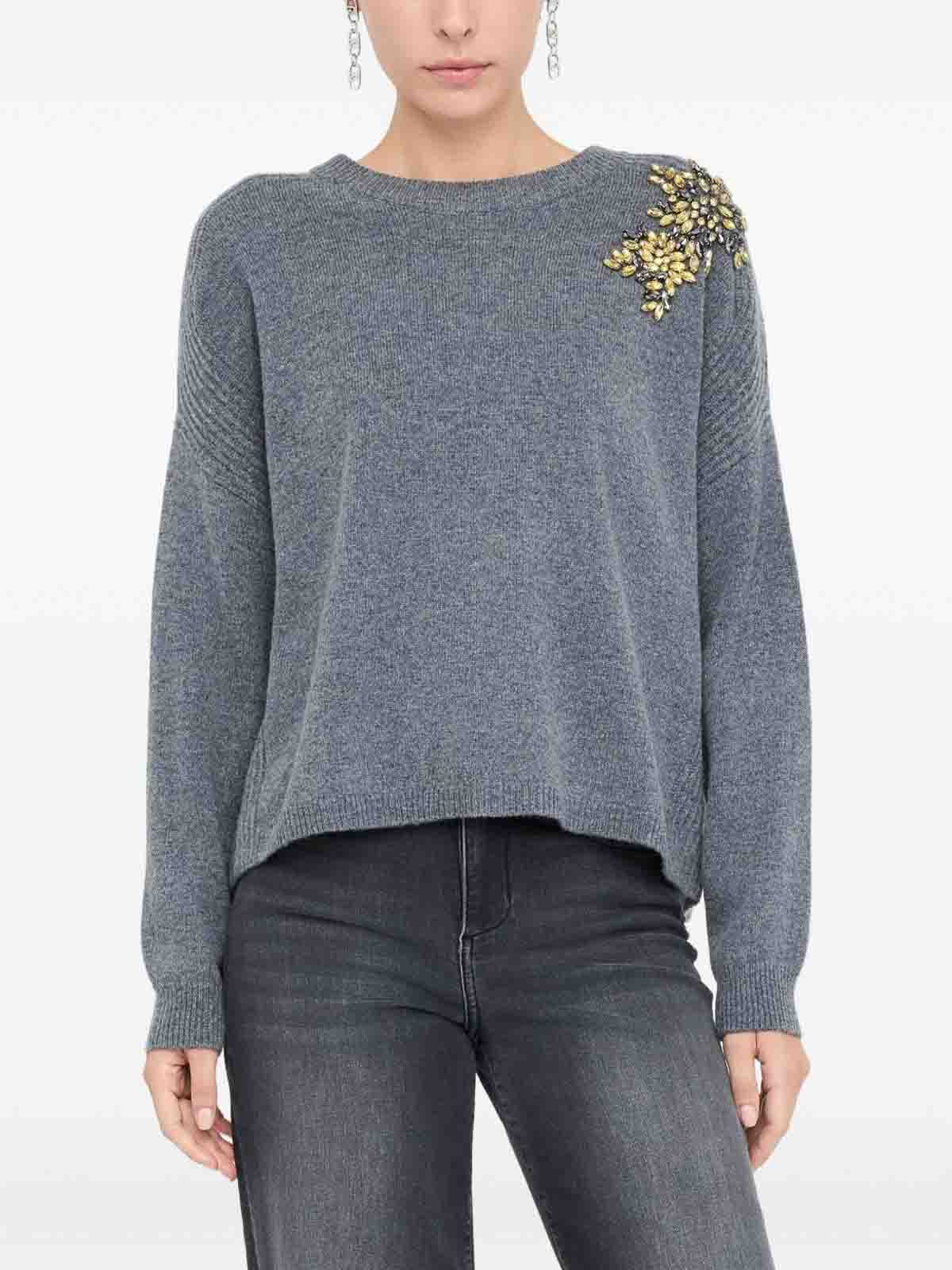 Liu Jo: Strickpullover mit Rundhalsausschnitt - Rundhalspullover - Grau