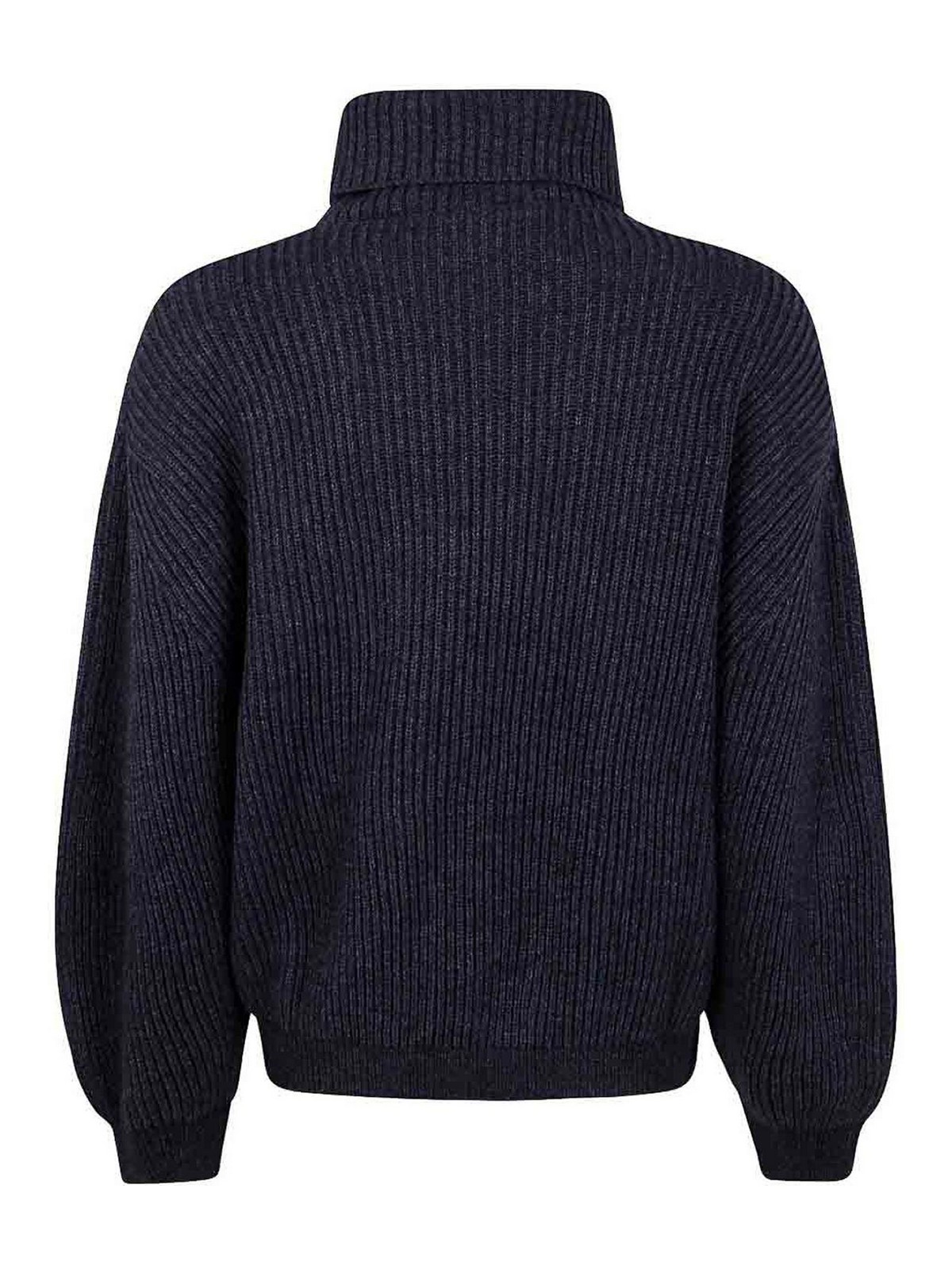 Anthrazitfarbener Rollkragen, gerippte Textur, Ballonärmel, lockere Passform, Mischung